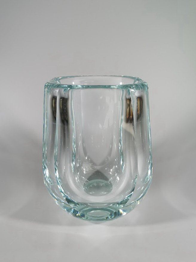 Vaza storo presuoto stiklo, Mid-century modern stiliaus. Autorinė. Svoris 1,2 kg. Kaina 33