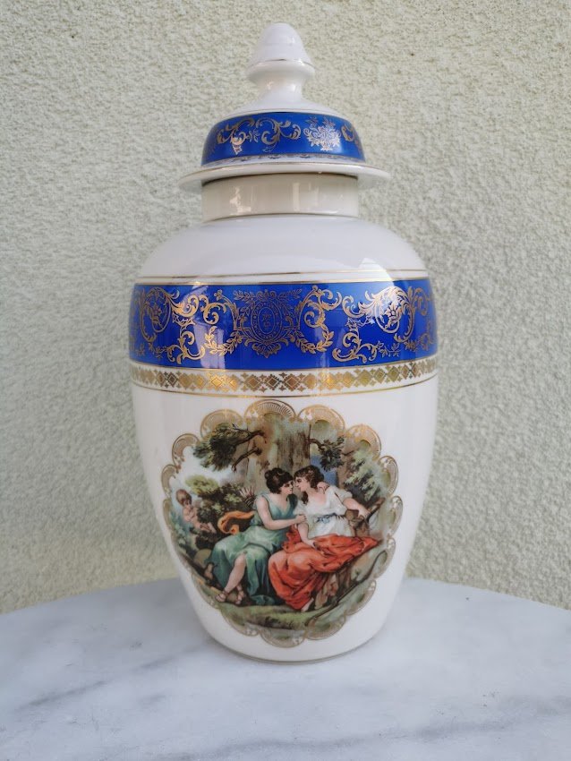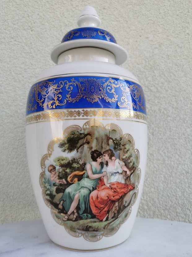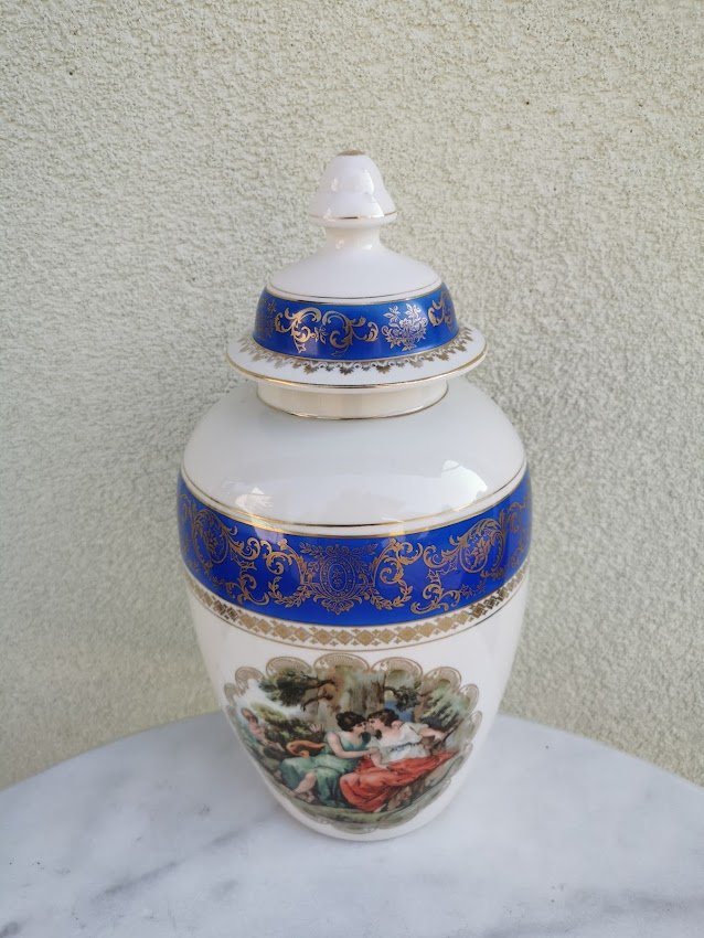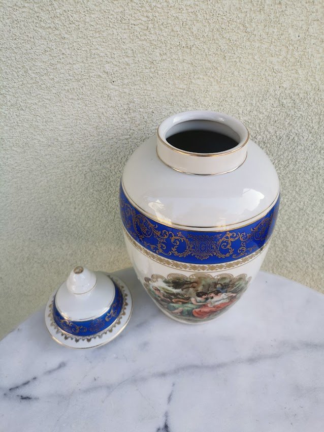 Vaza su dangčiu, urna Oscar Schlegelmilch. Aukštis 34 cm. Vokietija. Kaina 63