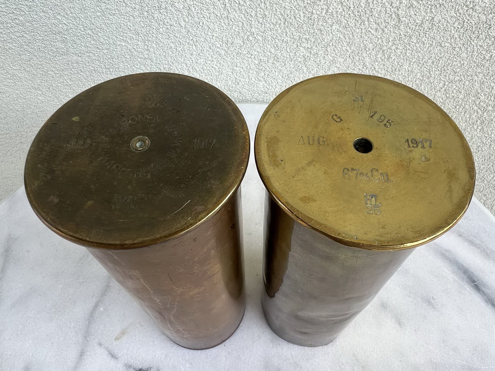 Vaza, tūta, tūtelė, gilzė žalvarinė, tuščia. 1917 m. Aukštis 24 cm., skersmuo 8 cm. 2 vnt. Kaina po 43