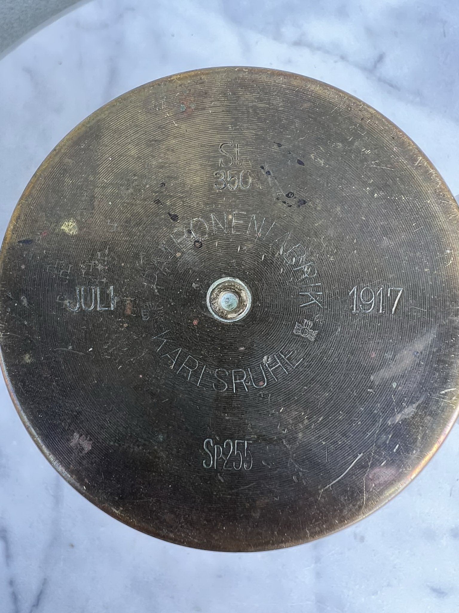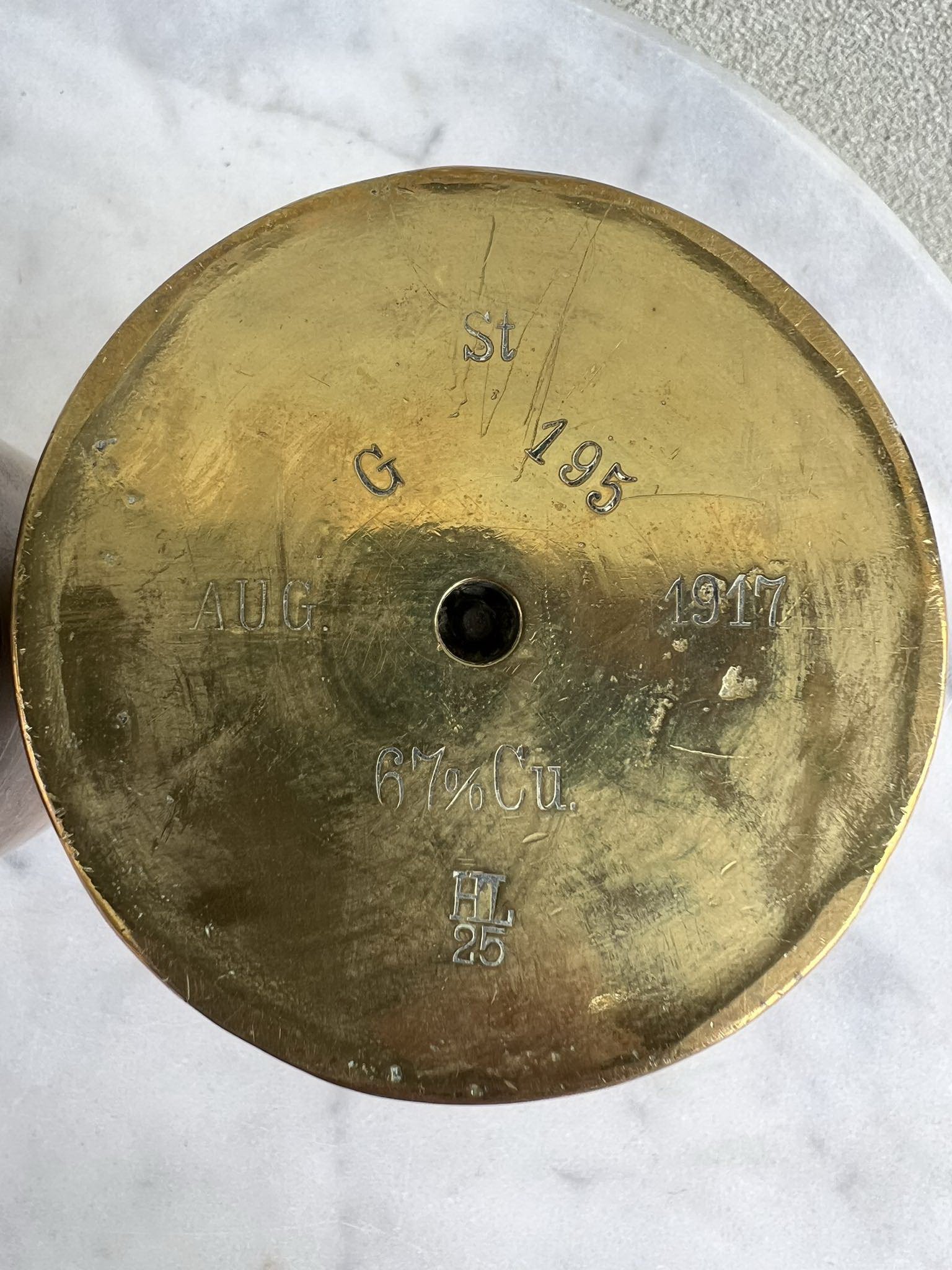 Vaza, tūta, tūtelė, gilzė žalvarinė, tuščia. 1917 m. 2 vnt. Kaina po 43