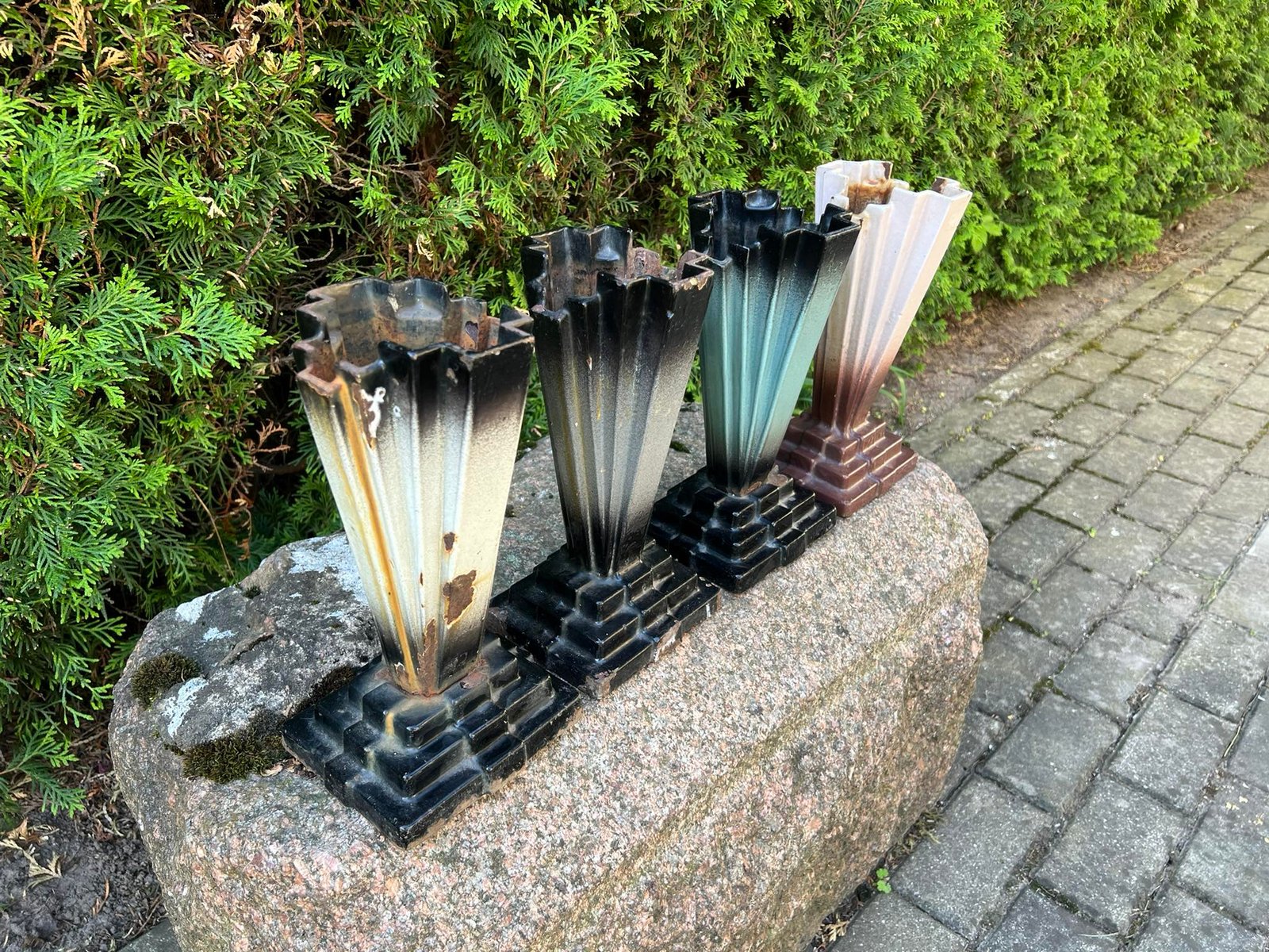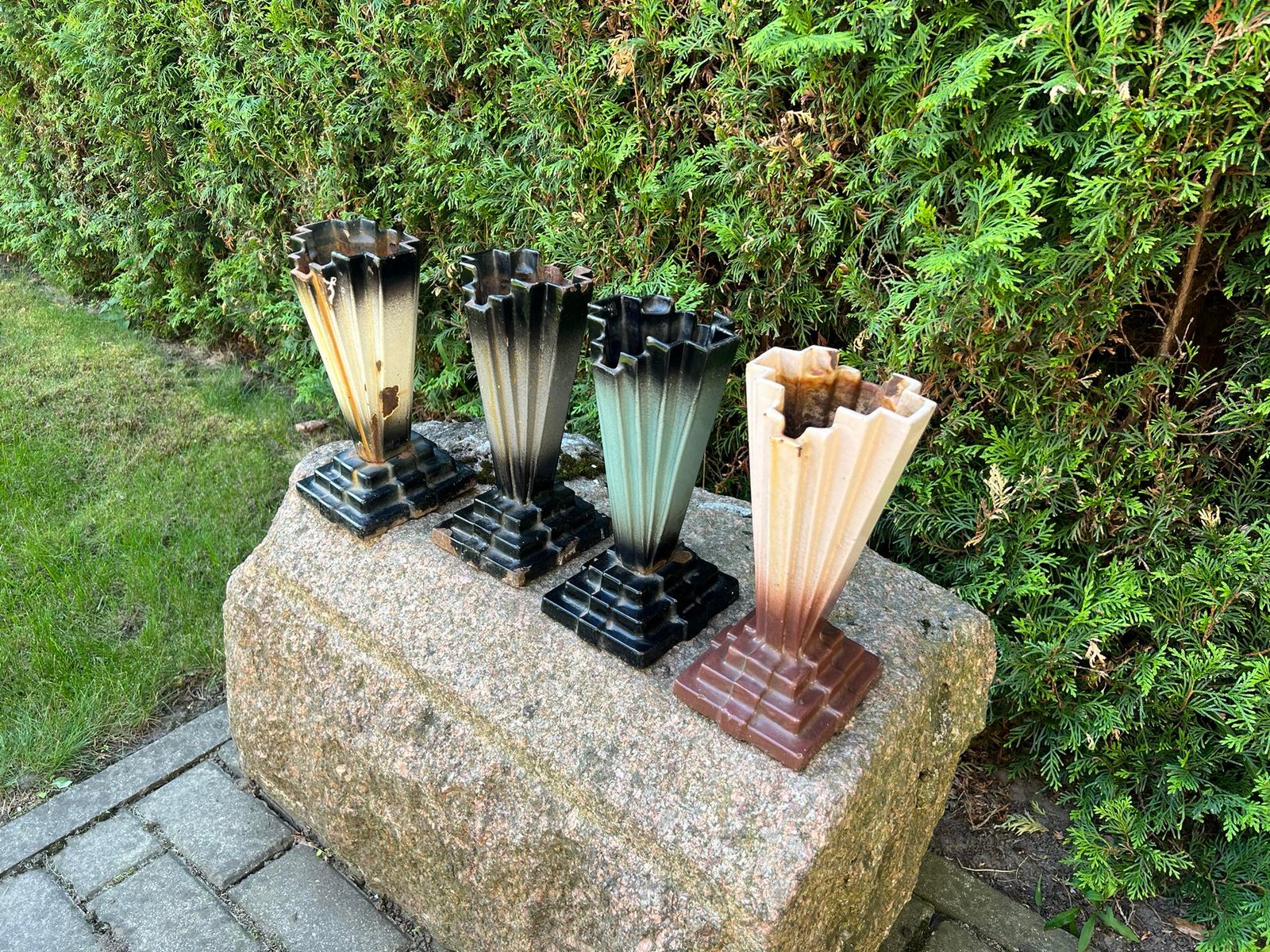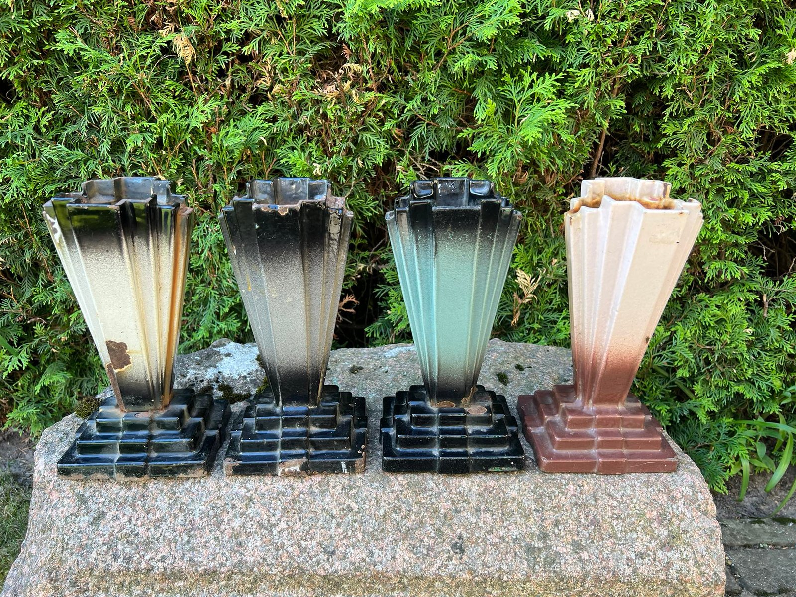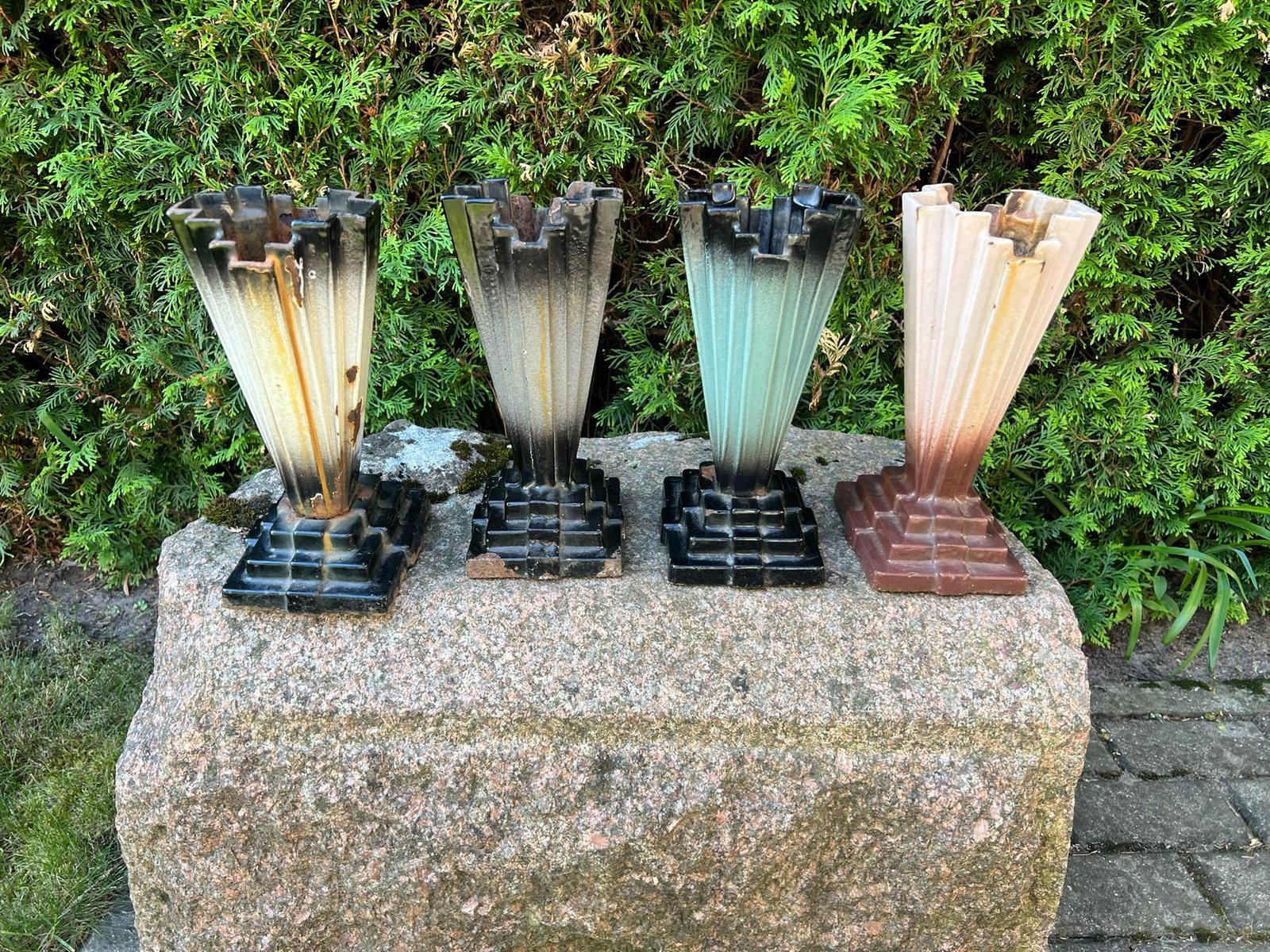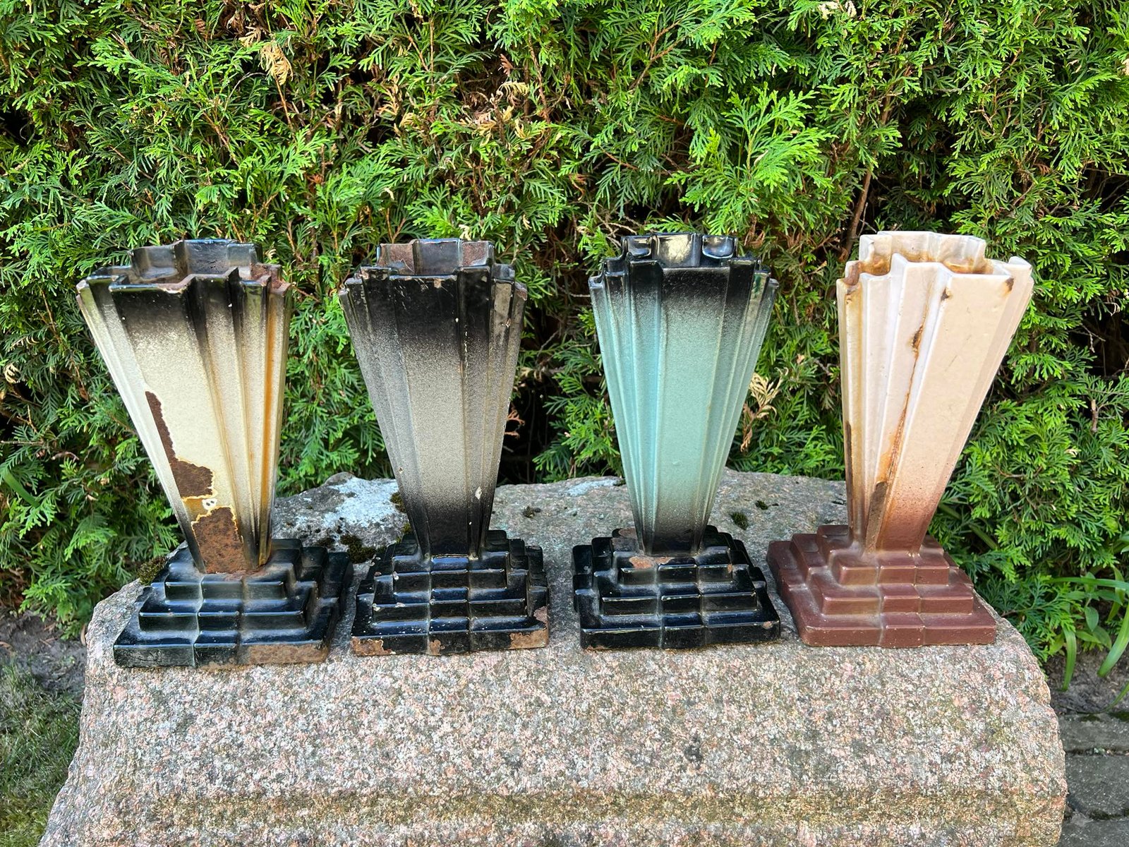 Vaza, vazos Art Deco, emaliuoto ketaus, špižinės, antikvarinės, Ebe Verken Husqvarna. Pagamintos apie 1930 m. Kaina nuo 33 iki 73