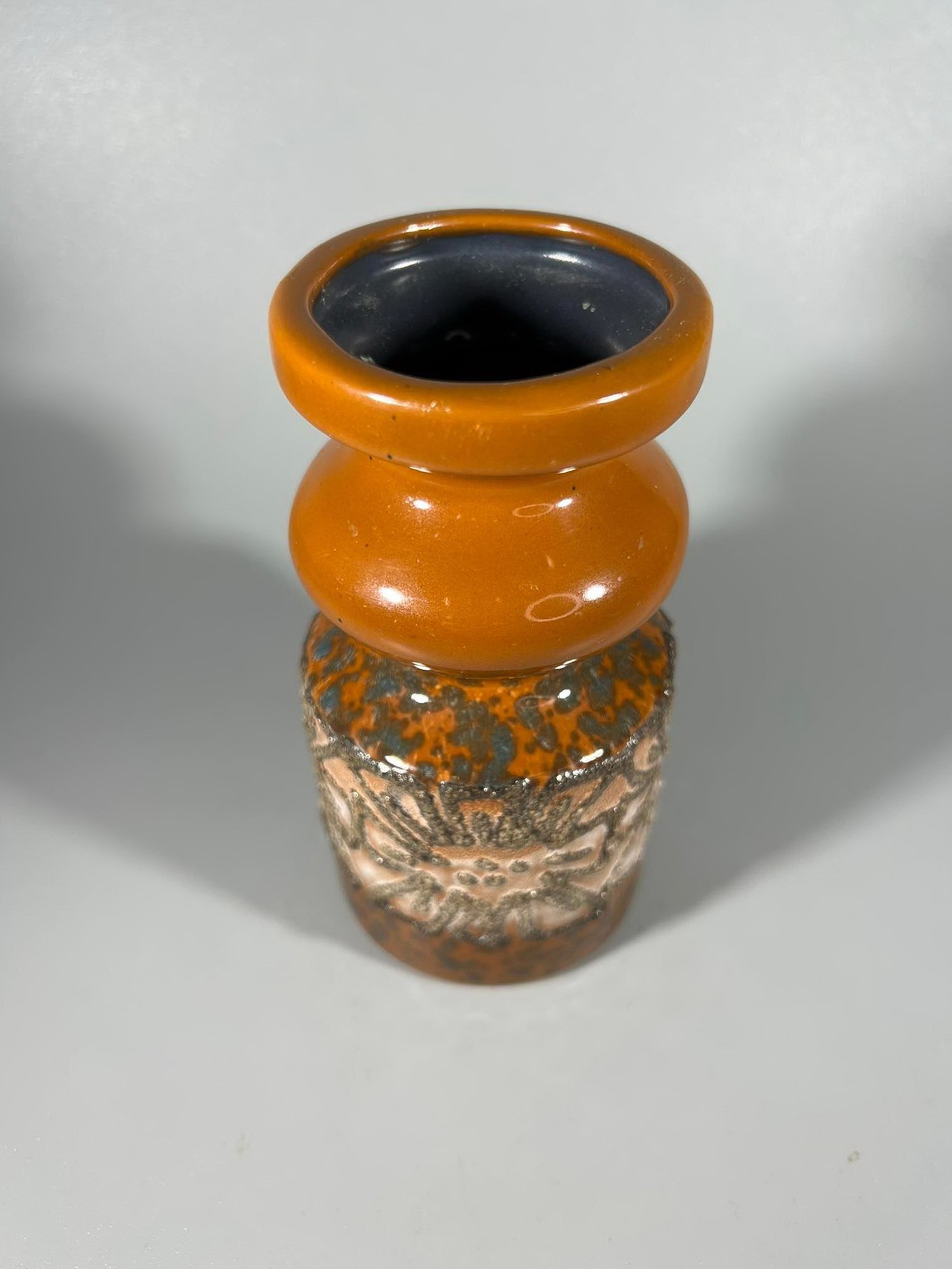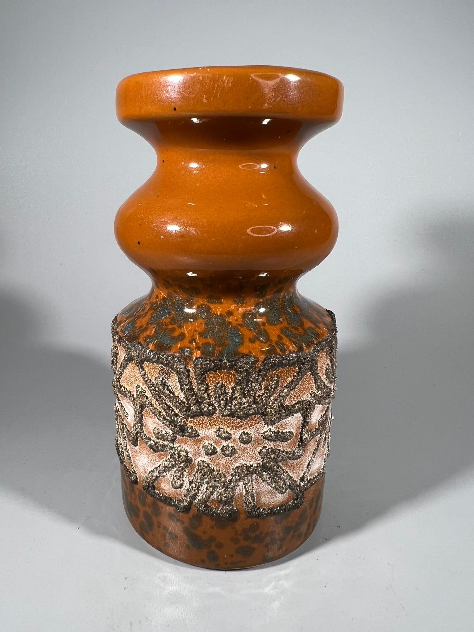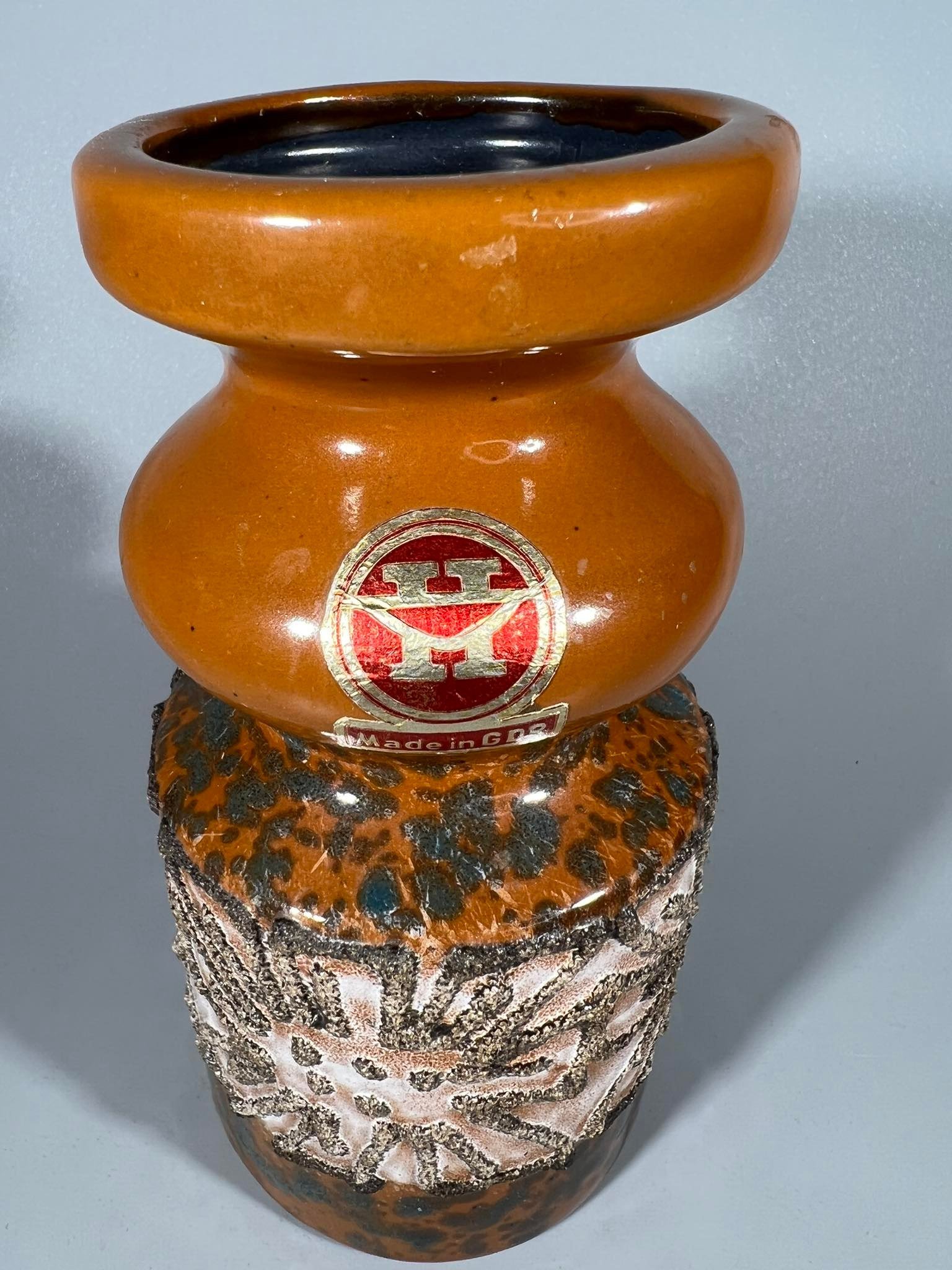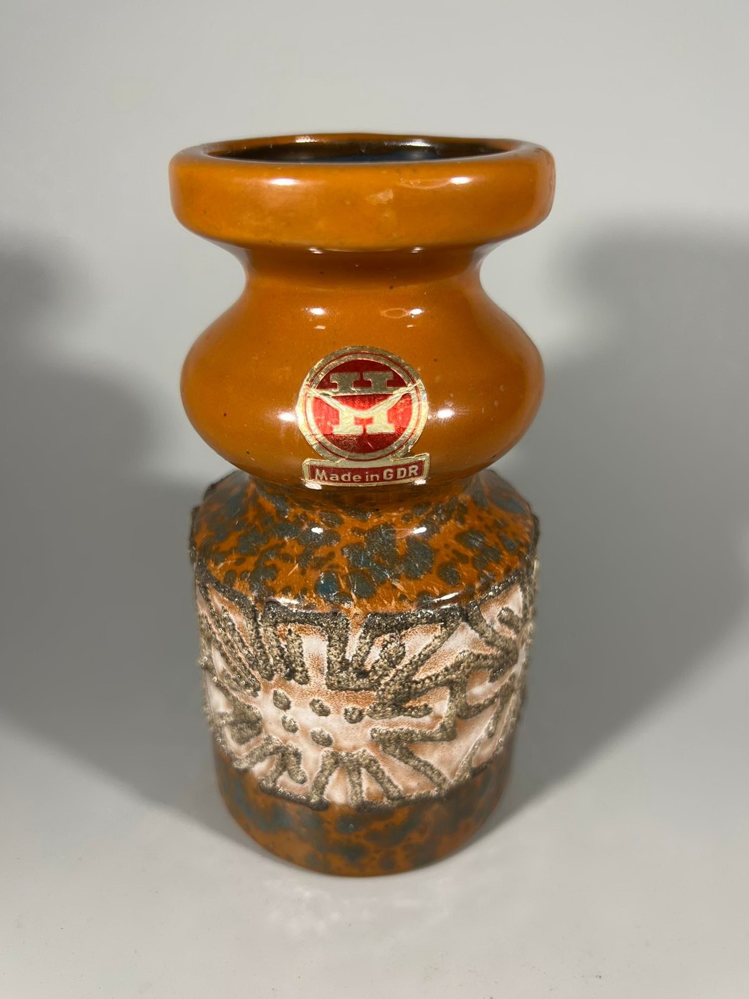 Vazelė keraminė, glazuruora Mid-century modern stiliaus, voliška. Aukštis 14, skersmuo 7 cm. Kaina 23