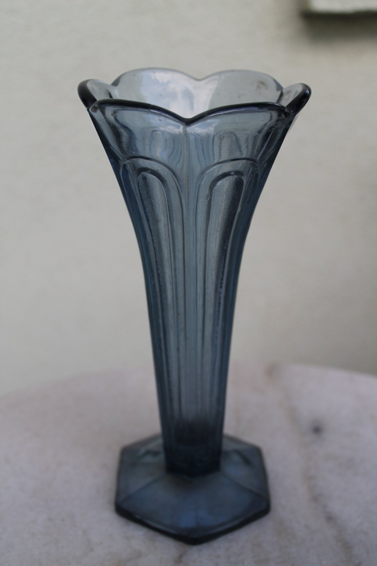 Vazelė mėlyno stiklo. Aukštis 21 cm. Kaina 21 Eur.
