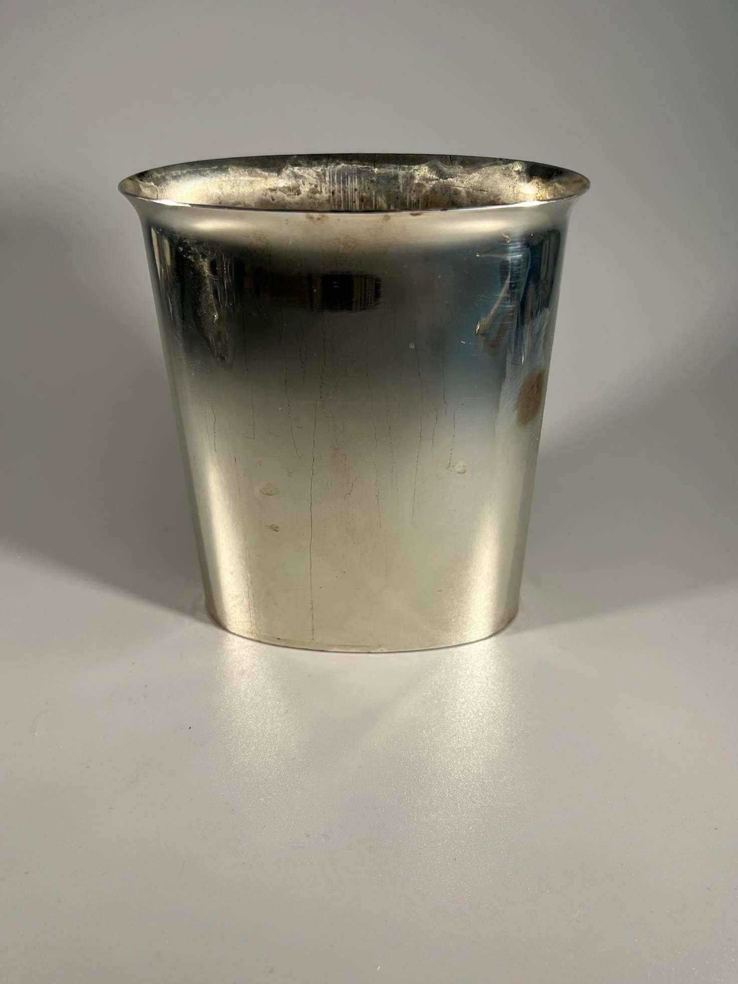 Vazelė metalinė, autorinė, sidabruota. Scandia silver. Dizainerio autografas. Kaina 17