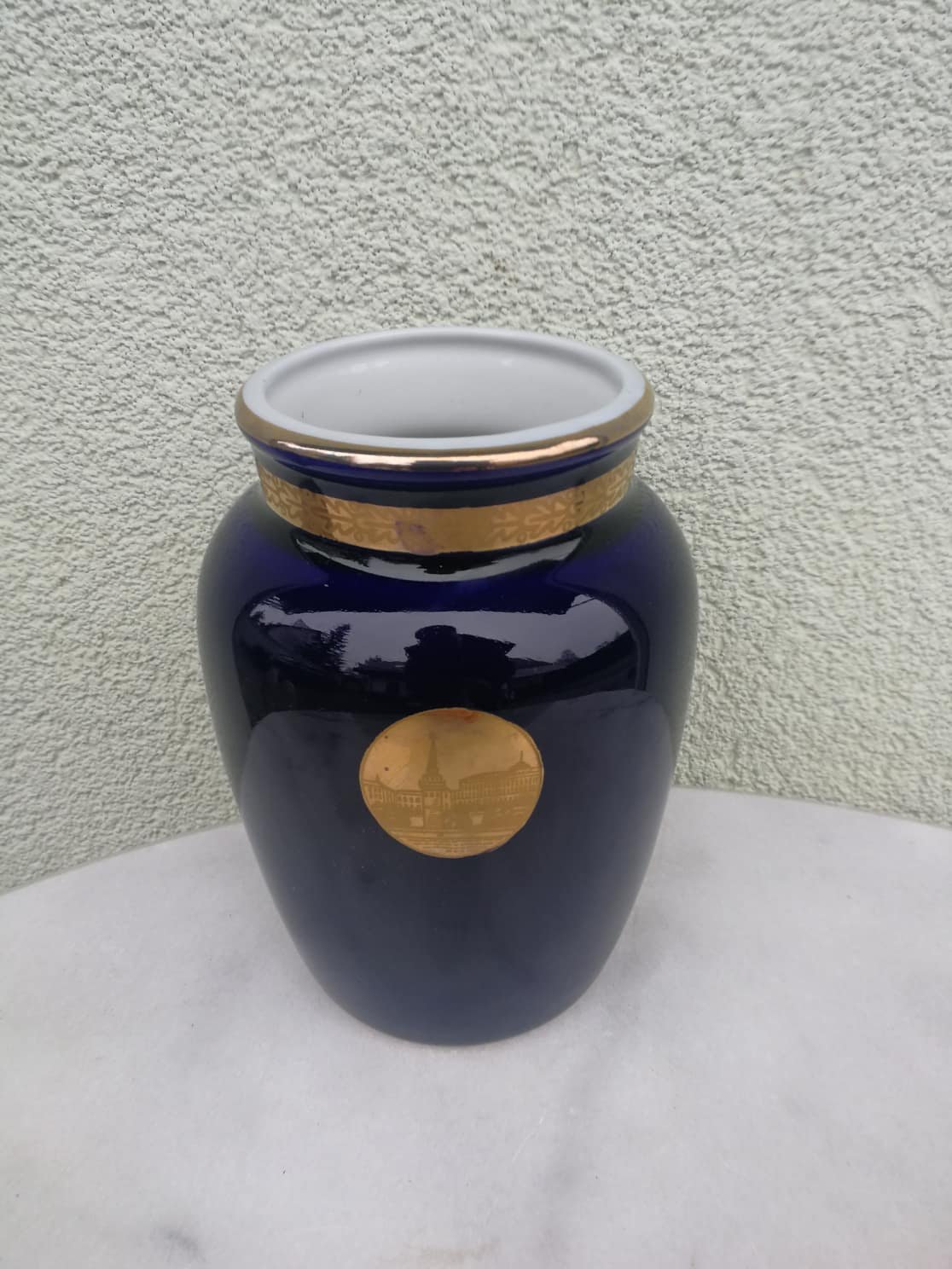 Vazelė porcelianinė kobalto LFZ. Aukštis 16, skersmuo 10 cm. Kaina 48