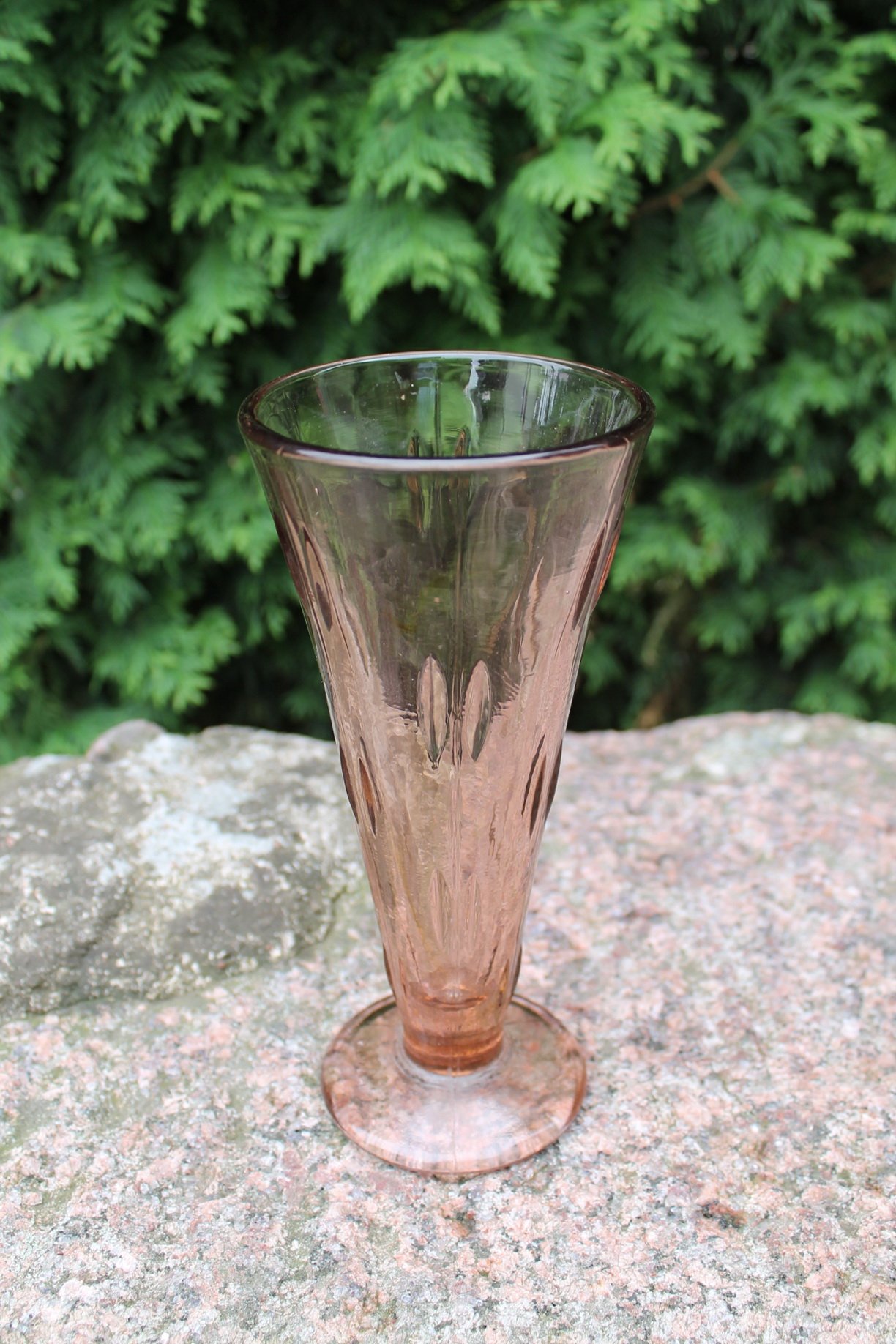 Vazelė rausvo stiklo NEMAN. НЕМАН. Gaminta 1930-1950 m. Aukštis 22 cm. Kaina 33