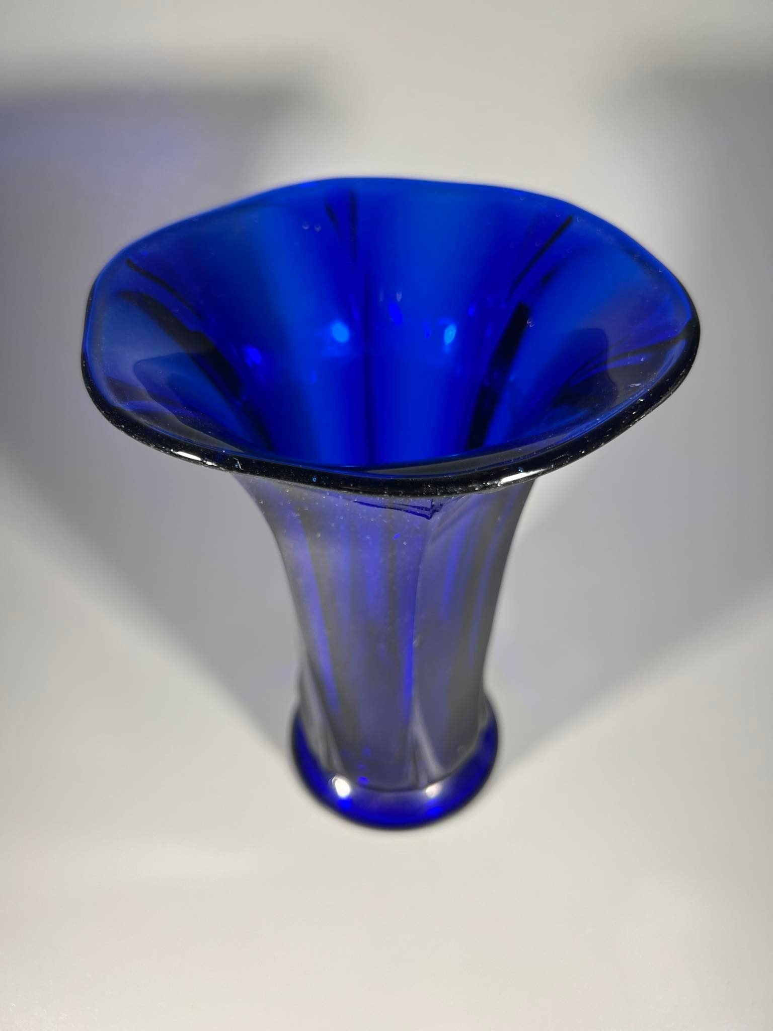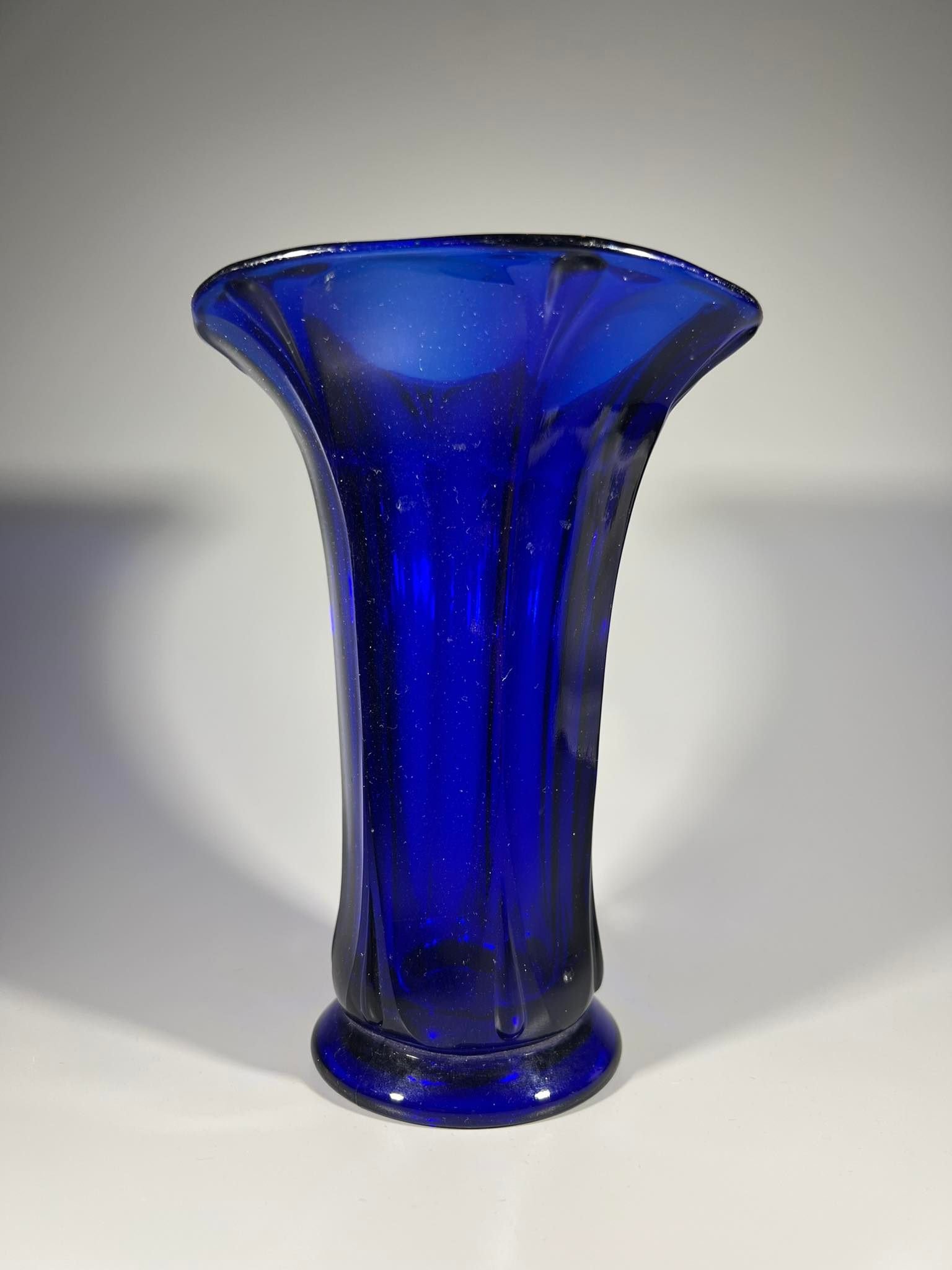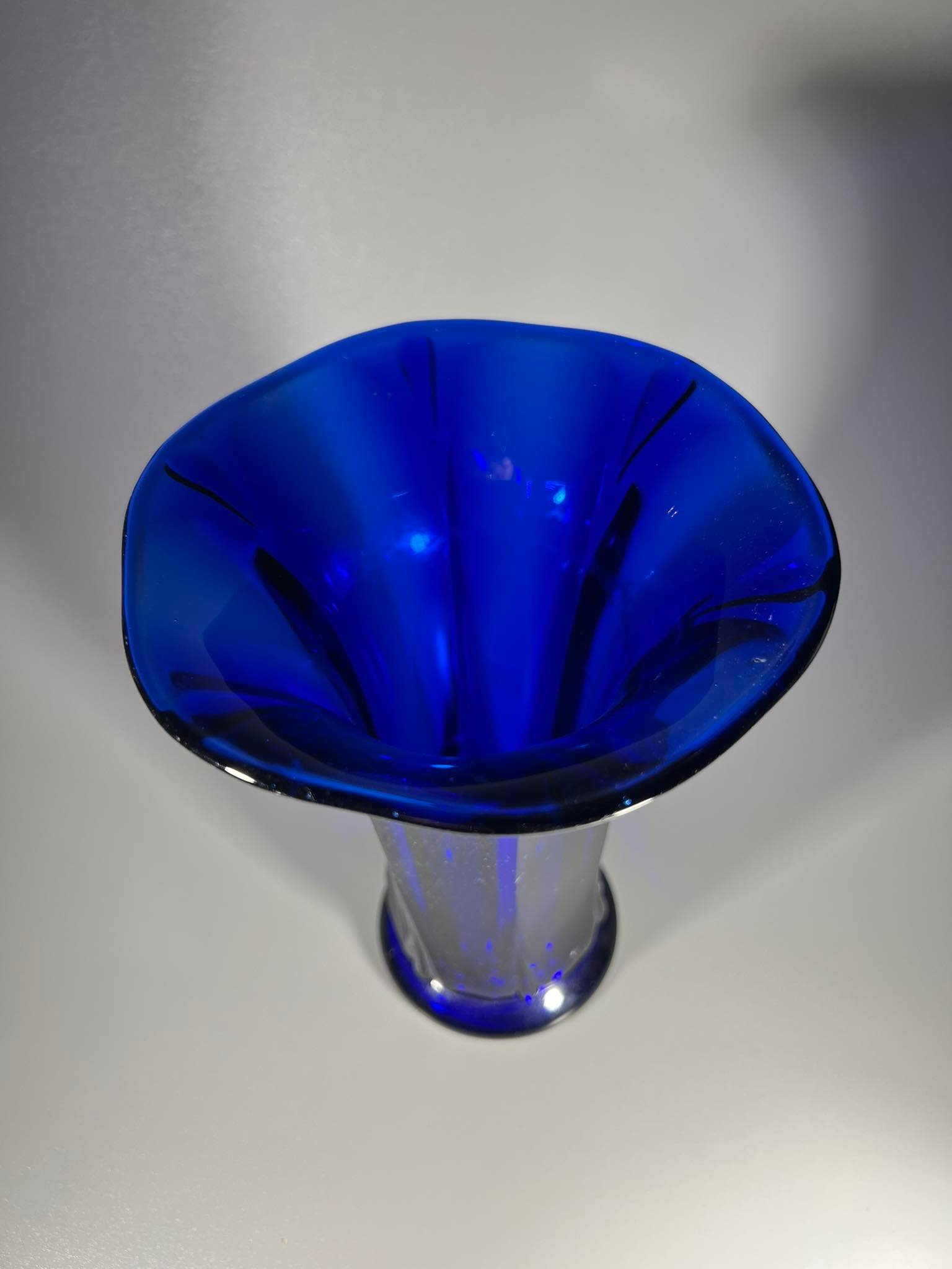 Vazelė, vaza mėlyno storo stiklo antikvarinė. Aukštis 18 cm. Kaina 23