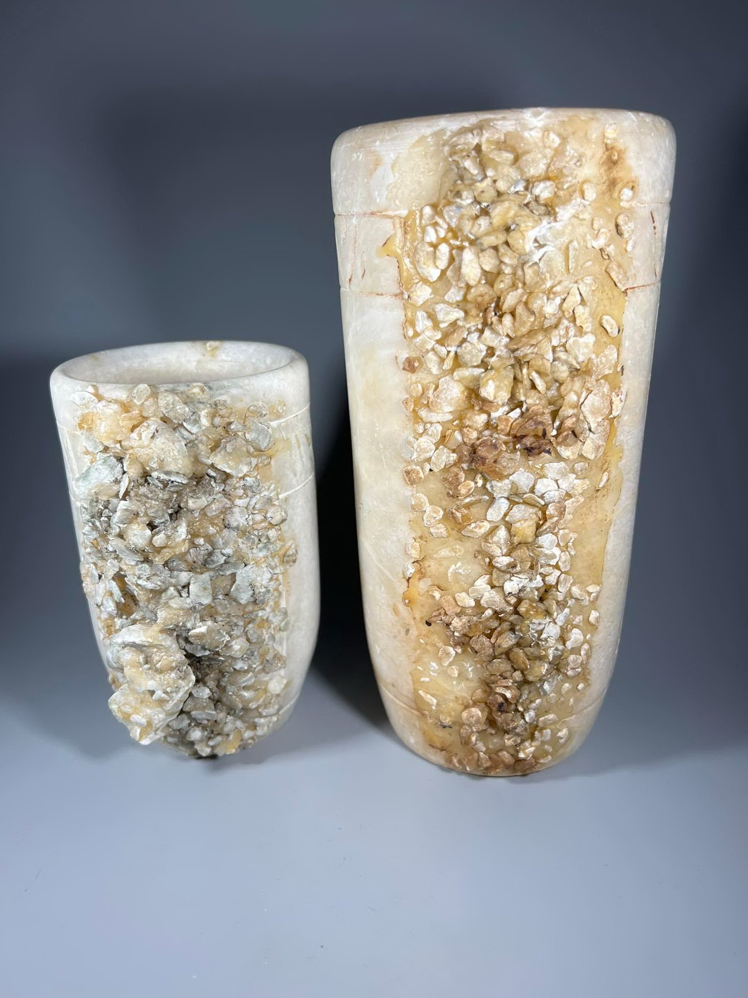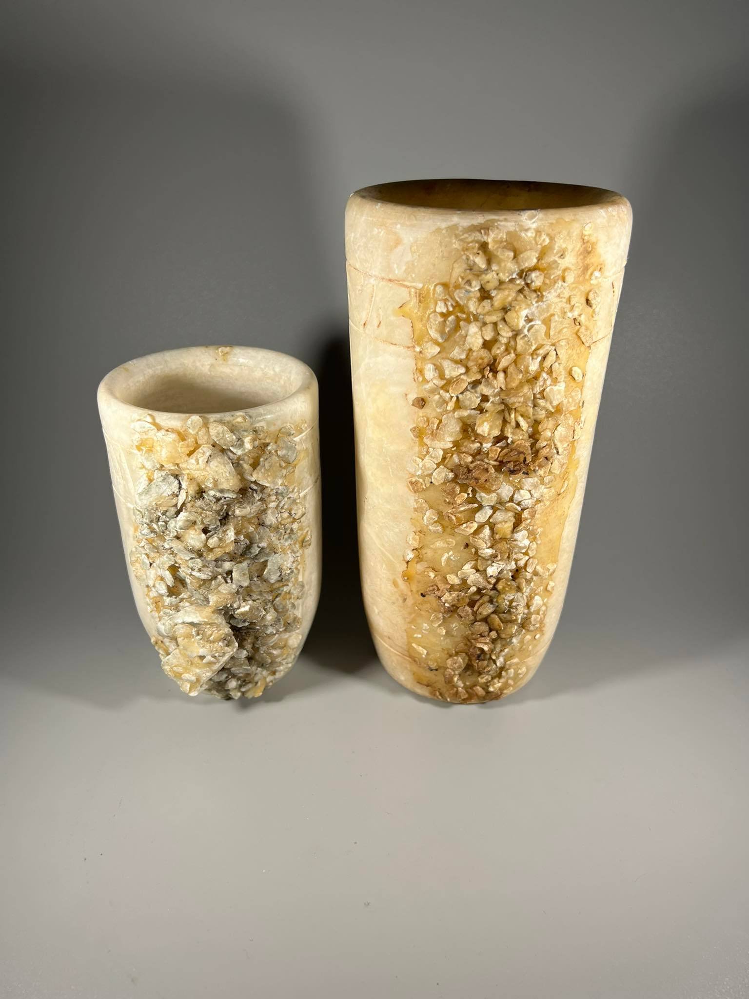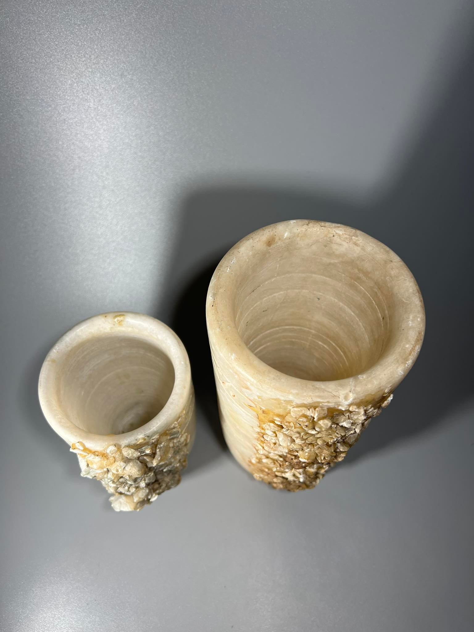 Vazos alebastro antikvarinės Alabastro Enia Cintruenigo. Made in Spain. Aukštis 16 ir 23 cm. Kaina 48 ir 58