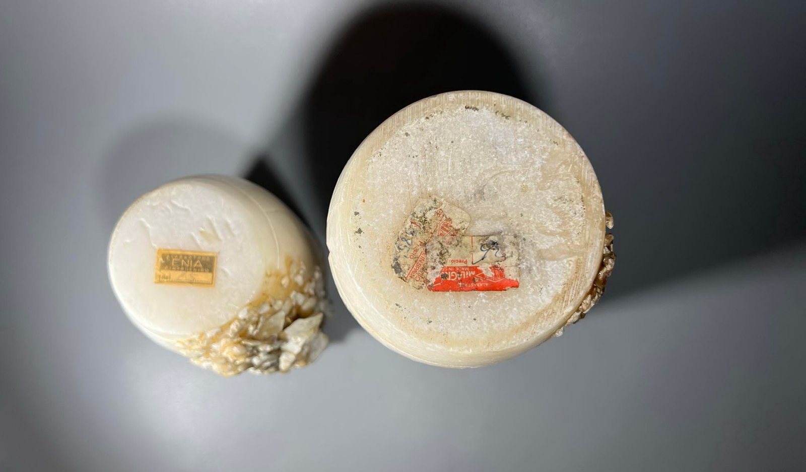 Vazos, vazelės alebastro antikvarinės Alabastro Enia Cintruenigo. Made in Spain. Aukštis 16 ir 23 cm. Kaina 48 ir 58