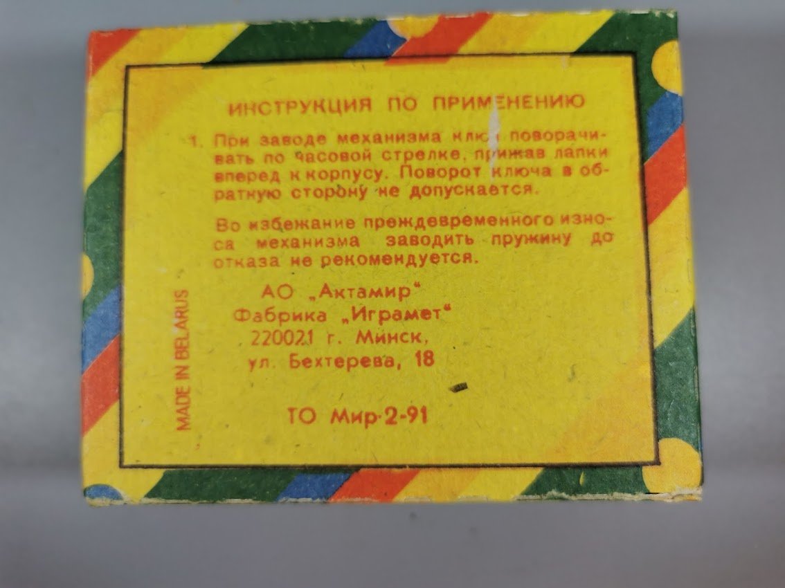 Žaislas skardinis prisukamas rakteliu – papūga, tarybinių laikų, originalioje dėžutėje, nenaudotas. Veikiantis. 6 vnt. Ilgis 10, aukstis 8 cm. Kaina po 32