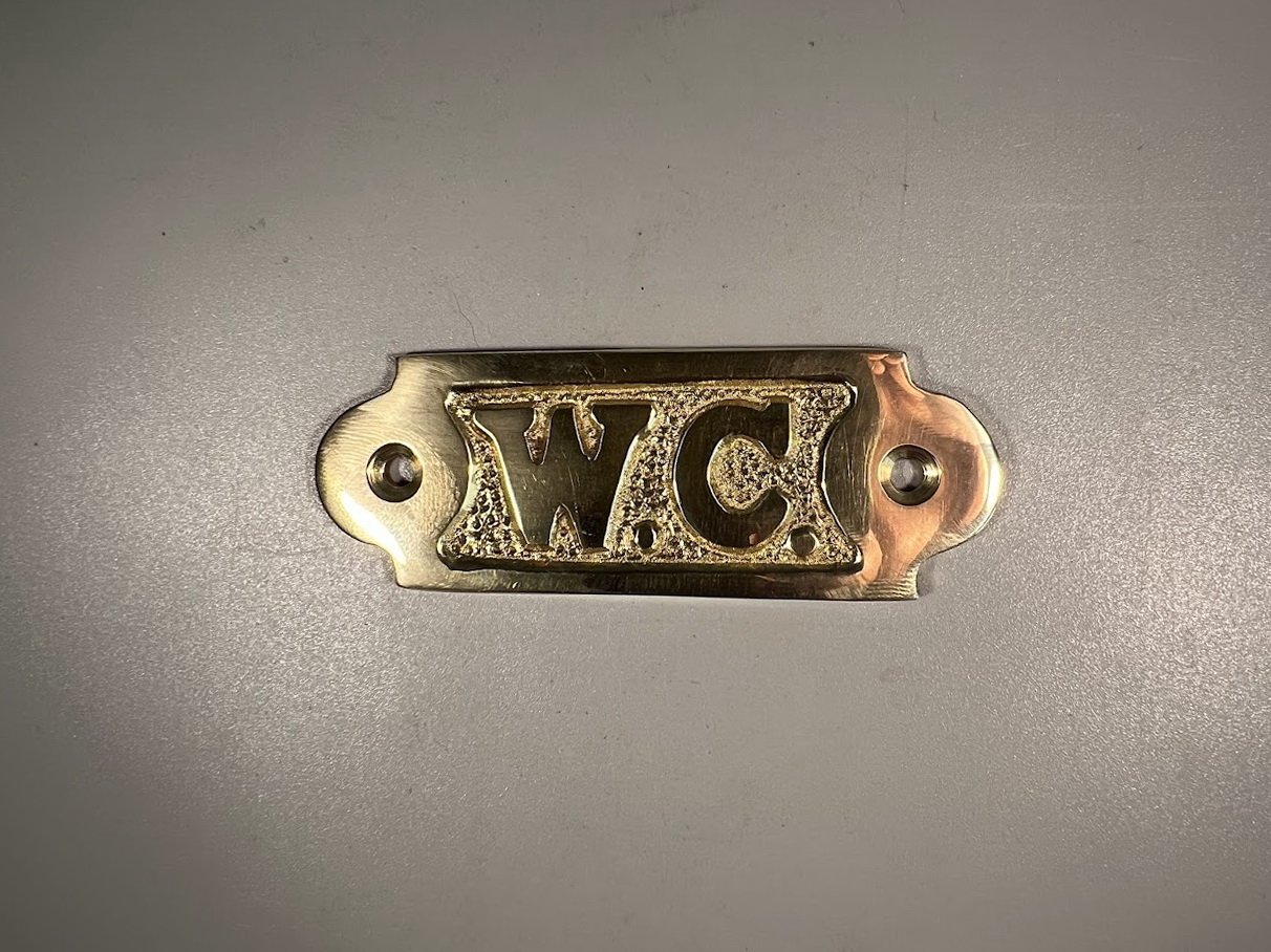 Ženklas WC, tualeto, informacinis, bronzinis. Dydis: 3,5 x 8,5 cm. 3 vnt. Kaina po 16
