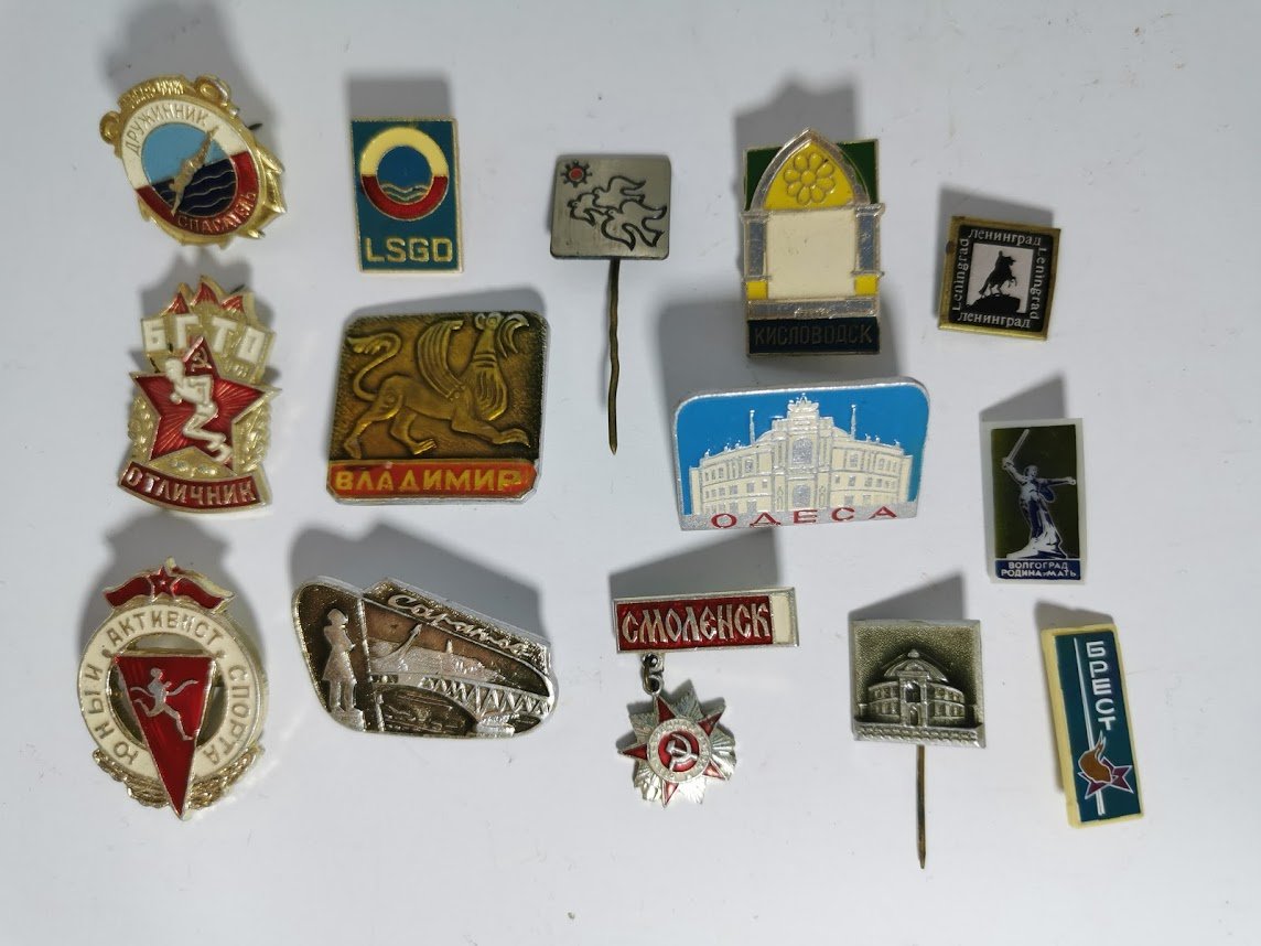 Ženkleliai tarybiniai, įvairūs. Kaina 11 už visus.