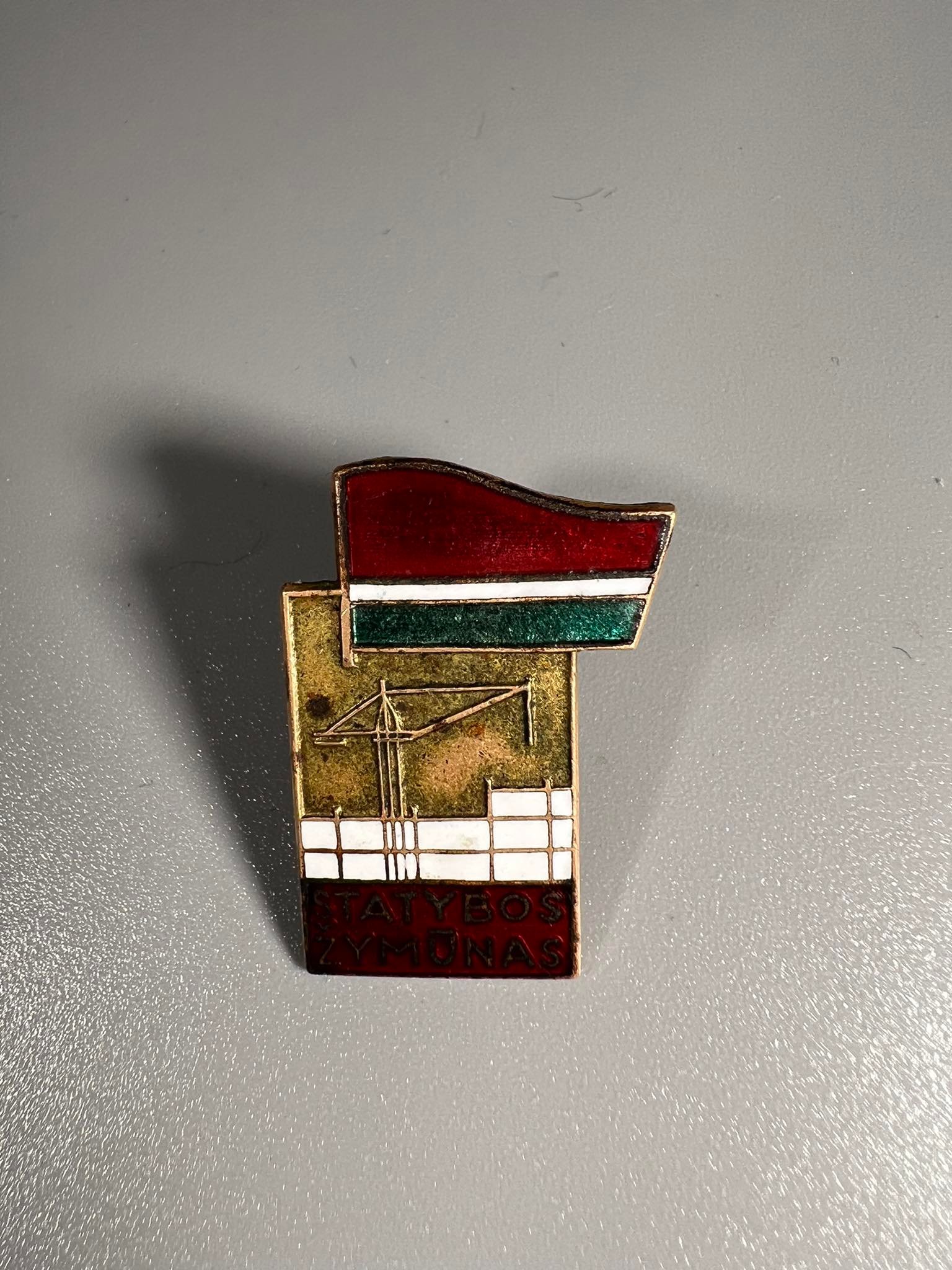 Ženklelis sovietinis, tarybinių laikų LTSR Statybos Žymūnas. Aukštis 3 cm. Kaina 16