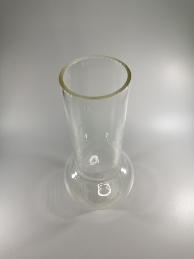 Žibalinės lempos gaubtas, stiklas. Aukštis 29, apatinis skersmuo 8 cm. Kaina 26