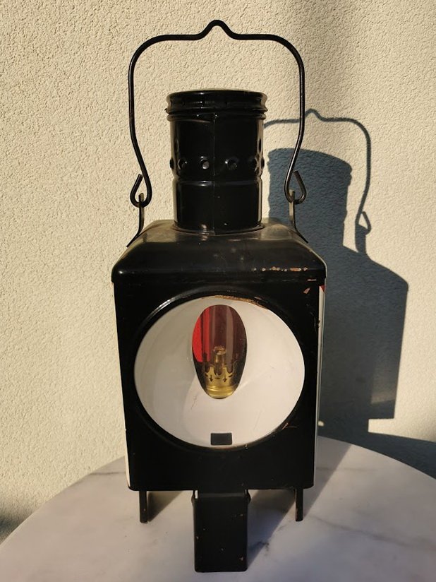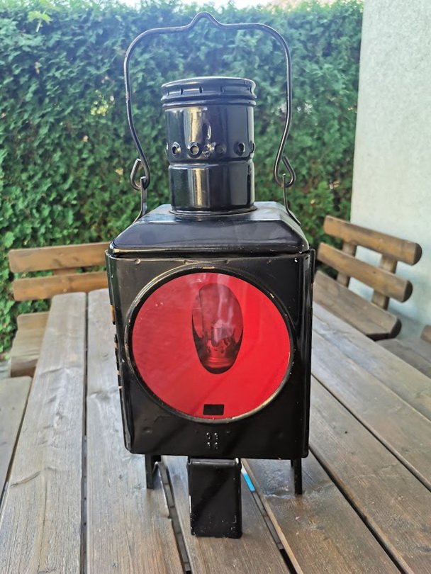 Žibintas geležinkeliečių, žibalinis, nenaudotas. Vokietija. Aukštis be lankelio 47, dydis: 20 x 20 cm. Kaina 163