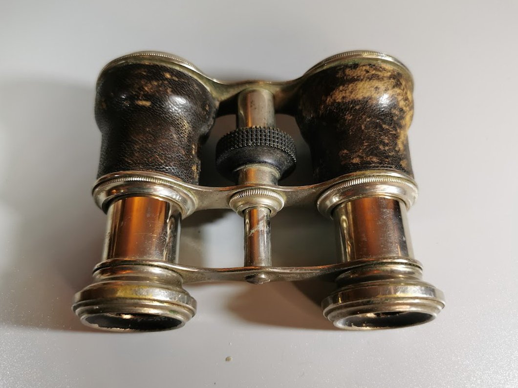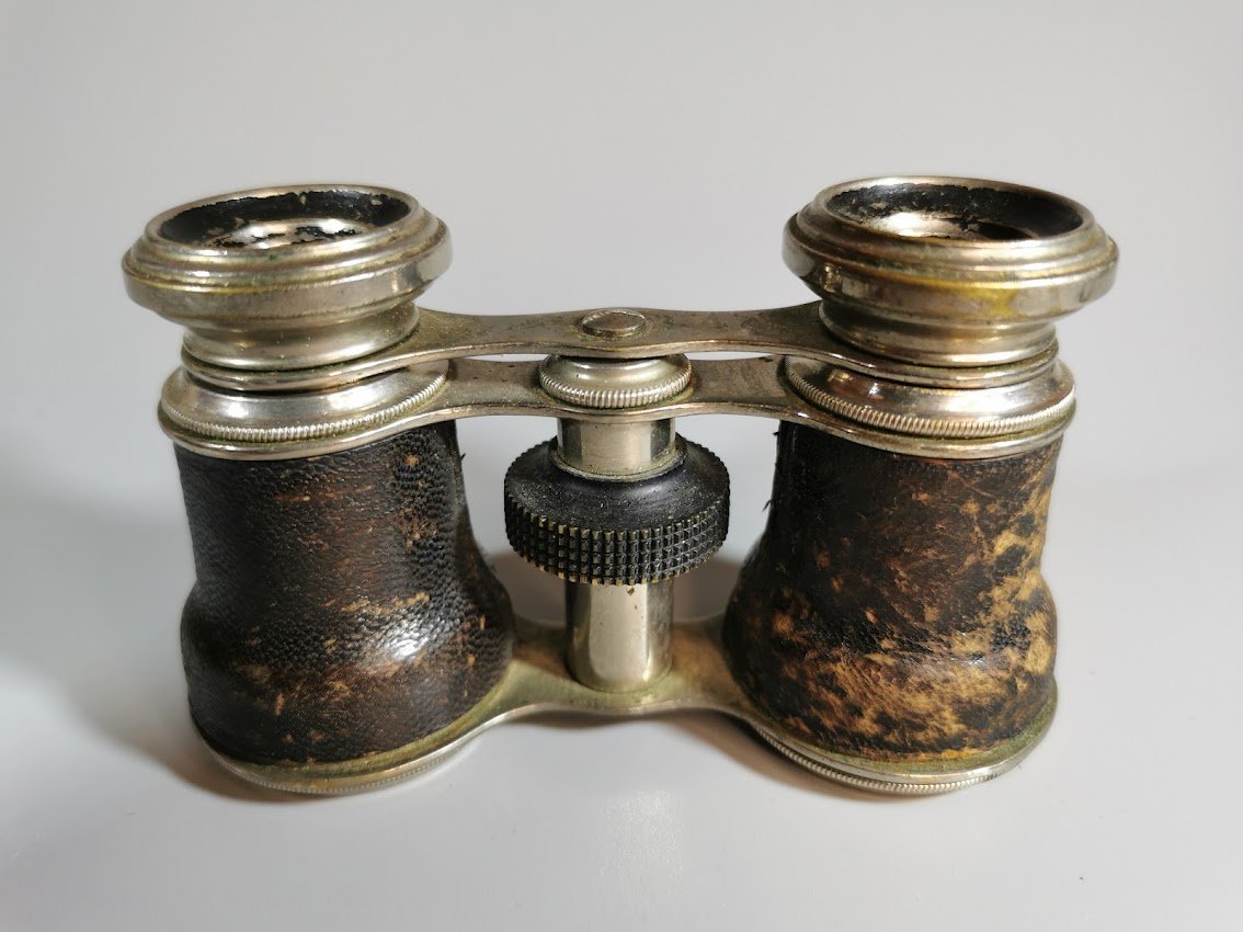 Žiūronai antikvariniai, teatriniai. Optika gera. Plotis 10, ilgis 6, išskleistų 8 cm. Kaina 43