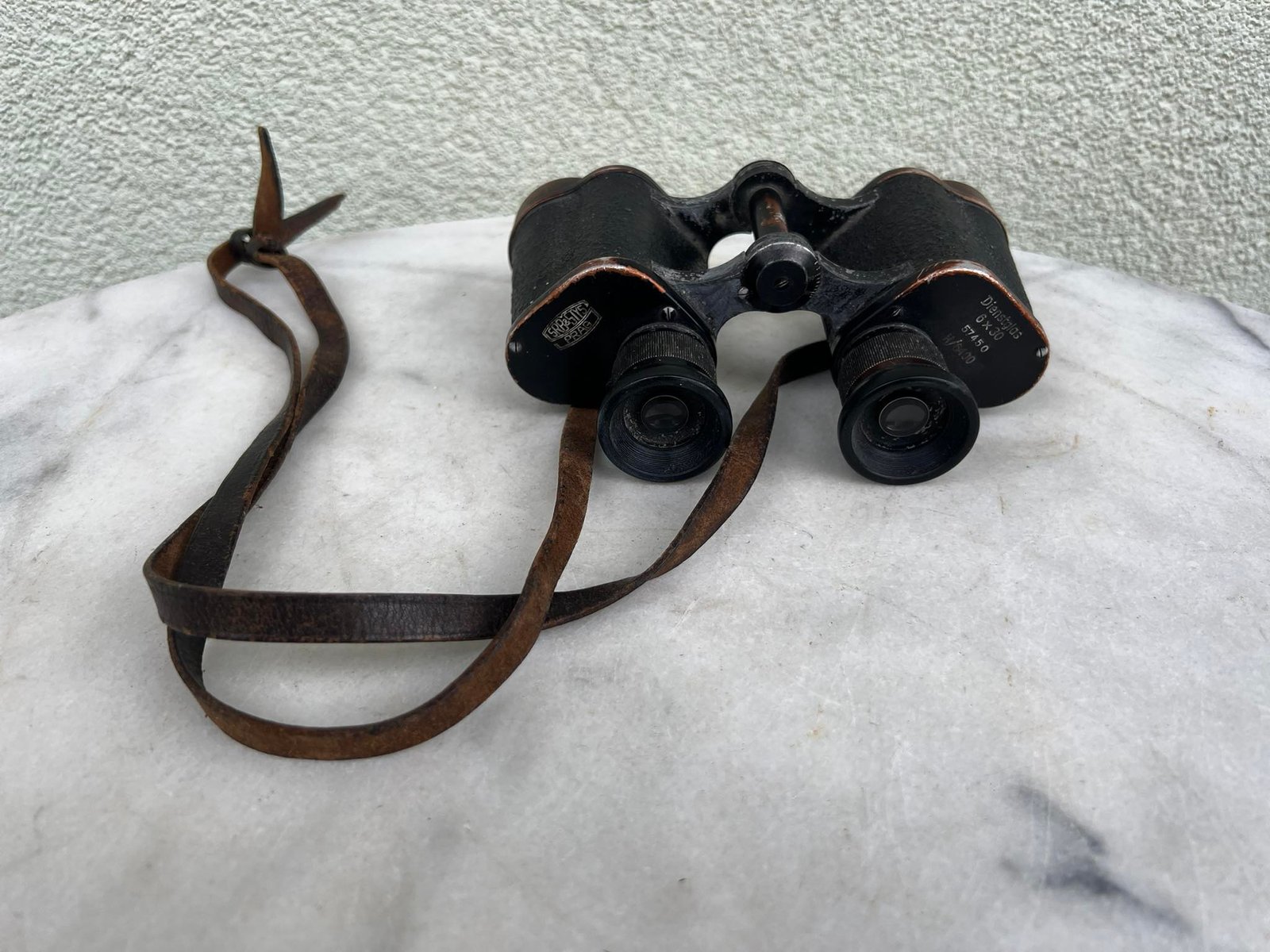Žiūronai Dienstglas 6×30, kariški, vokiški, pagaminti Vokietijos okupuotoje Čekoslovakijoje, Pragoje, SRB & STYS PRAG. 1938-1945 m. Optika švari, tinkami naudojimui. Kaina 228