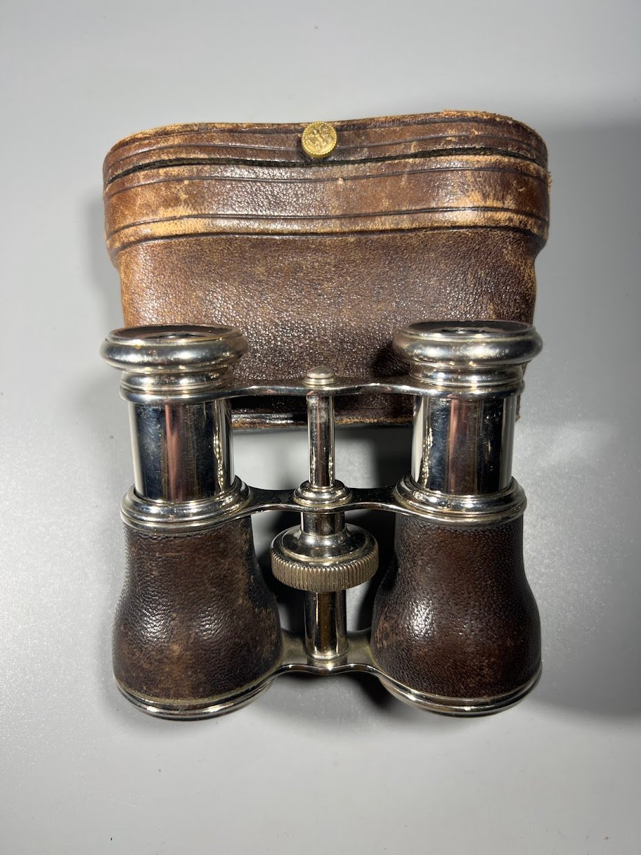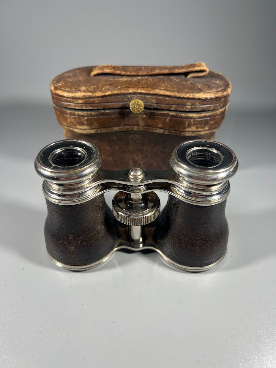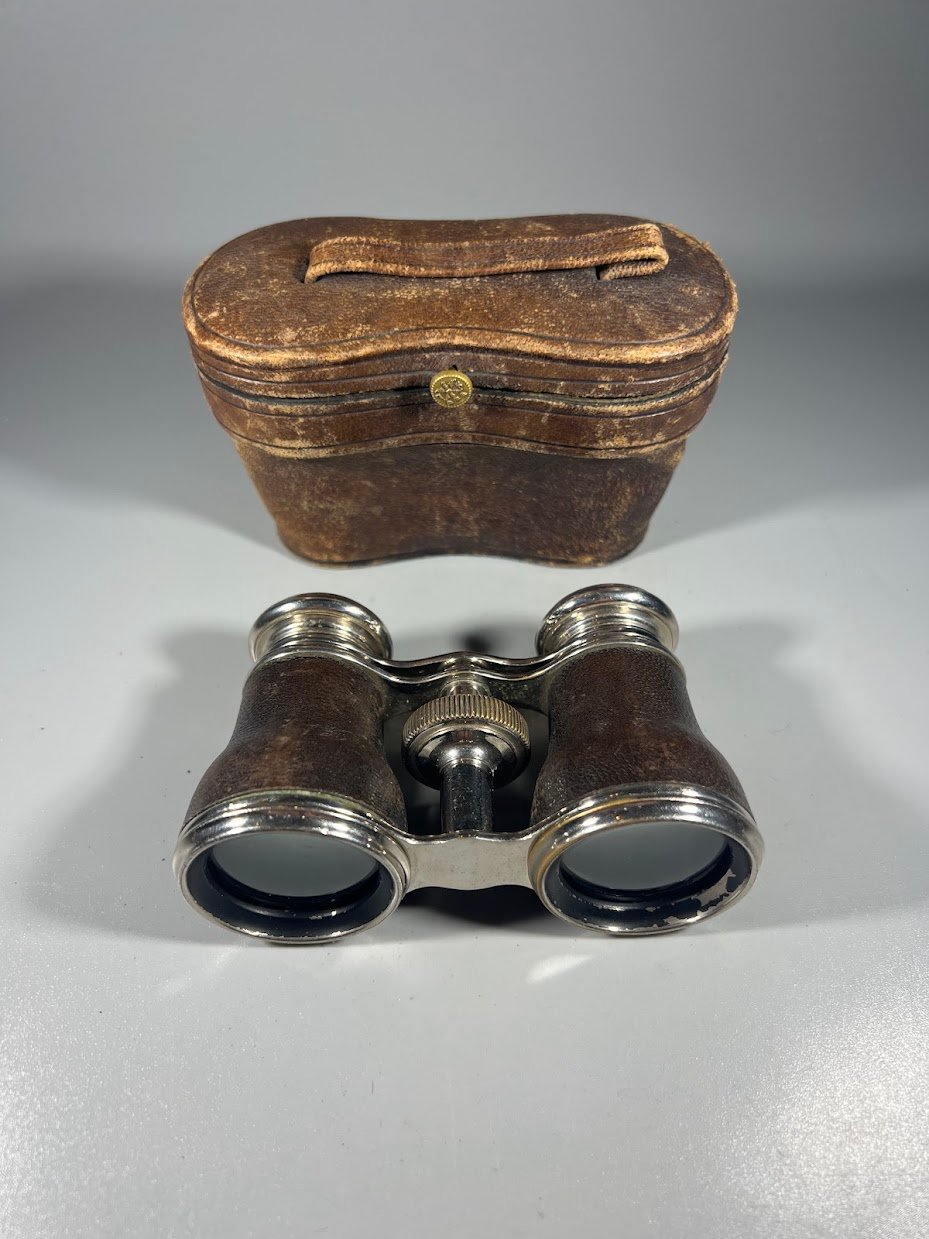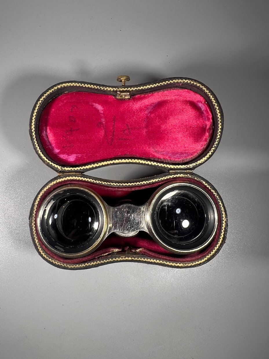 Žiūronai teatriniai, operos, su dėklu, antikvariniai. 1890–1920 m. Kaina 57