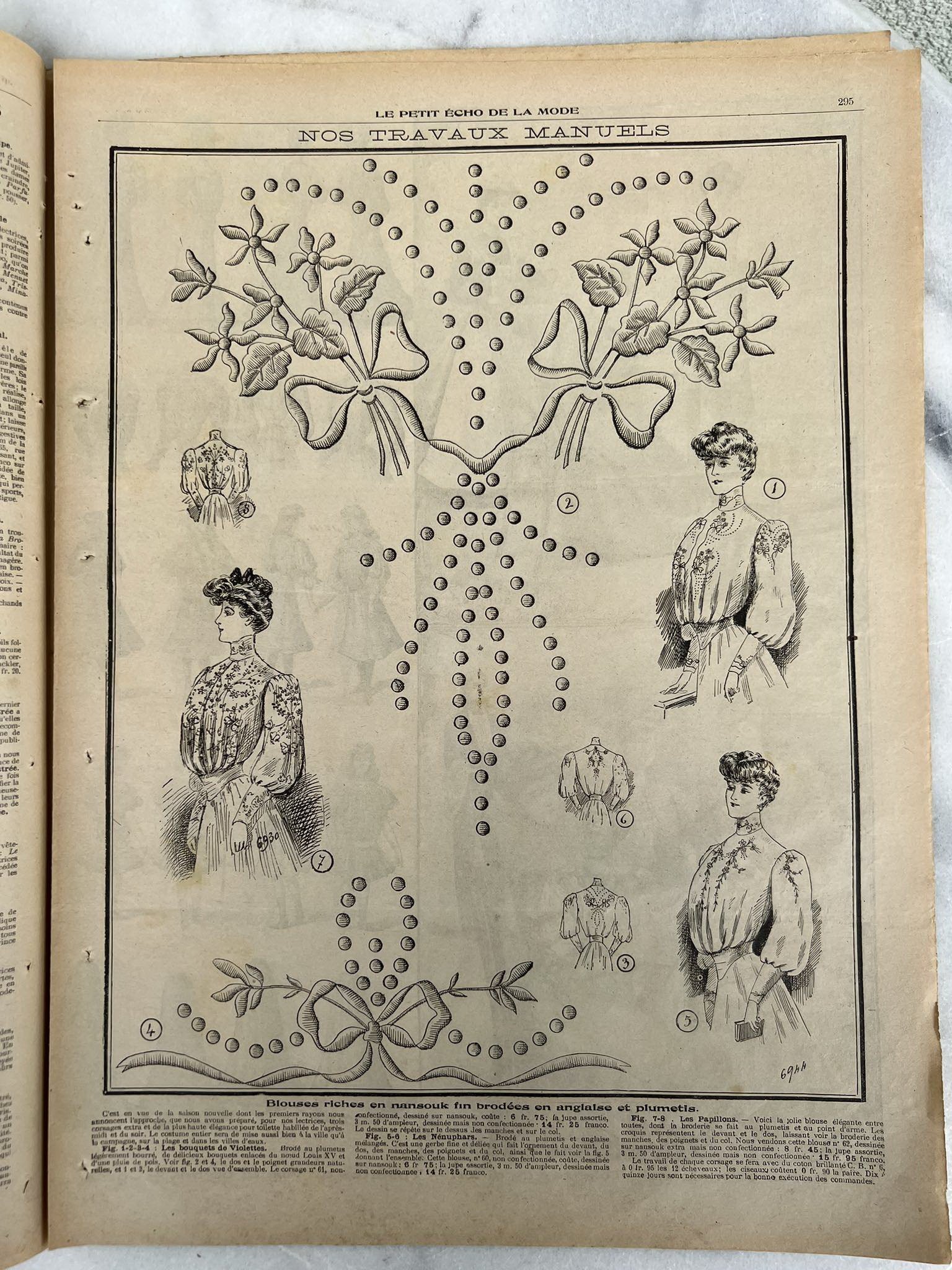 Žurnalas Le Petit Écho de la Mode, prancūziškas, antikvarinis. 1905 m. Dydis: 29 x 39 cm. 6 lapai. Kaina 18