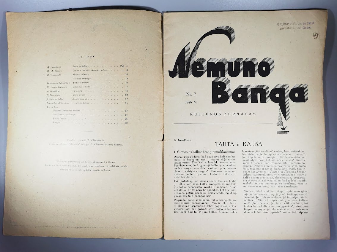 Žurnalas Nemuno banga. Kultūros žurnalas. 1946 m. Kaina 12