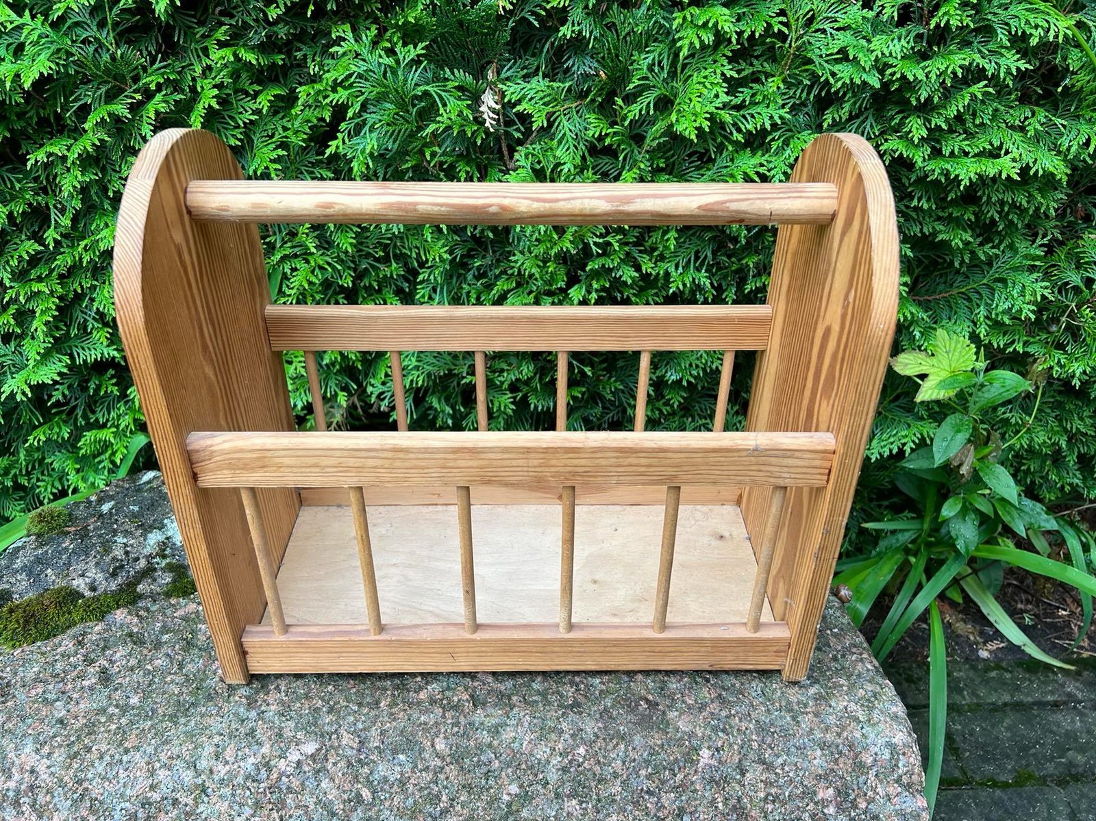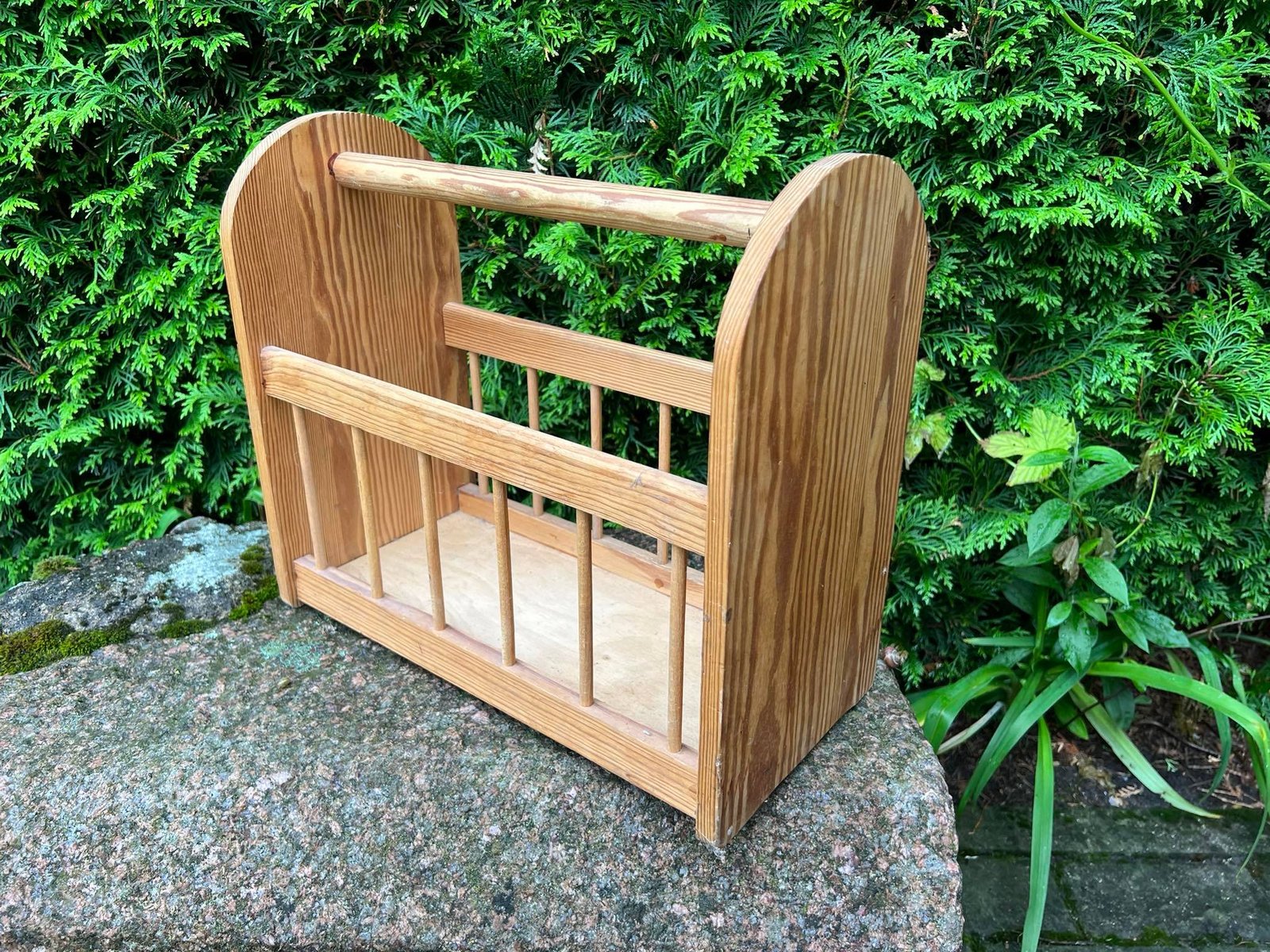 Žurnalinė, laikraštinė medinė, vintažinė. Aukštis 35, ilgis 40, plotis 19 cm. Kaina 23