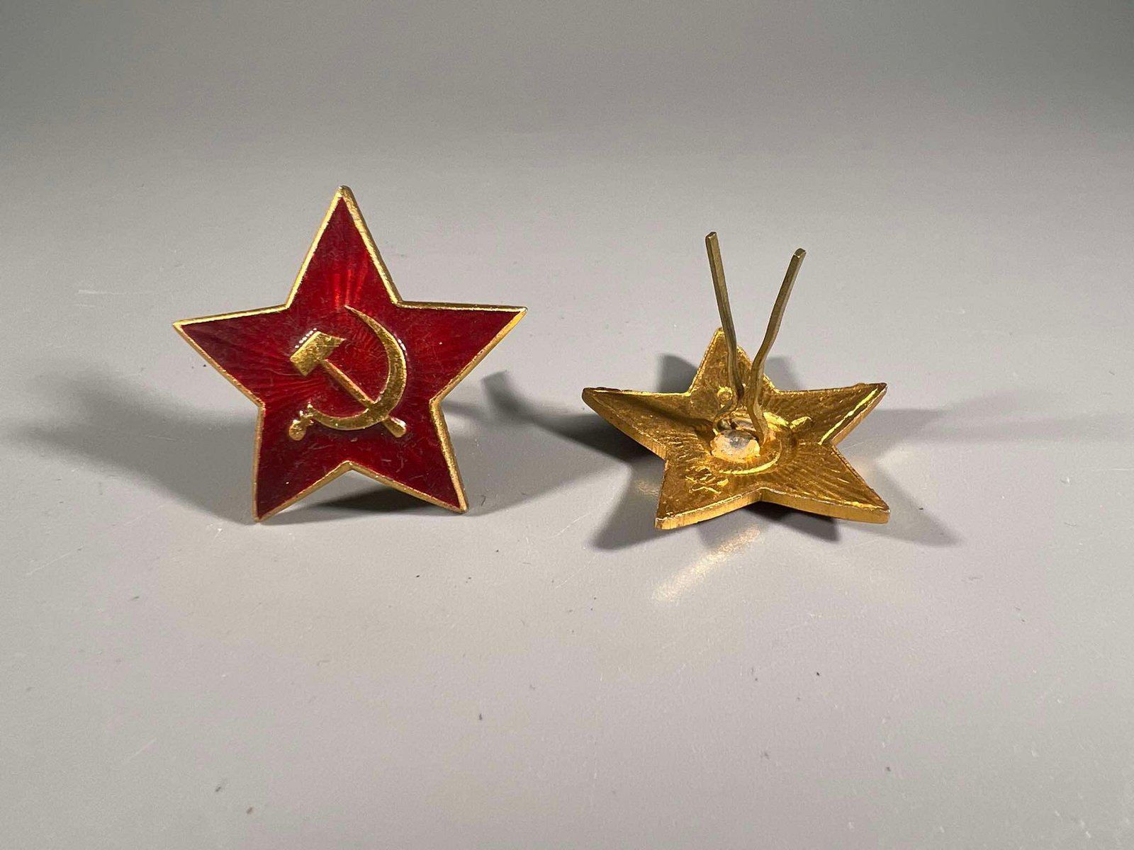 Žvaigždė su kūju ir pjautuvu, ženklelis, kokarda sovietinė, tarybinių laikų. 3 vnt. Kaina po 6