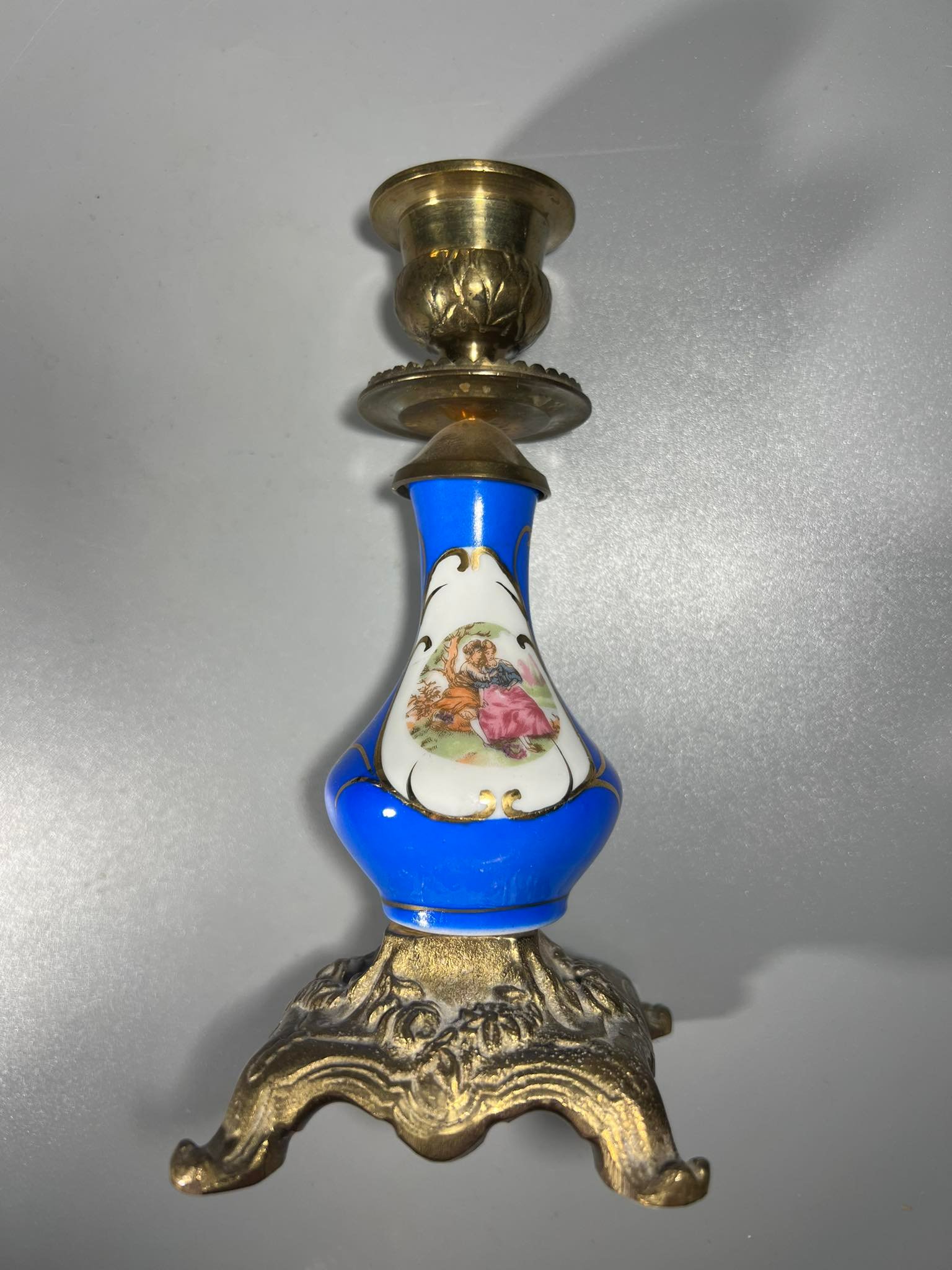 Žvakidė antikvarinio stiliaus, žalvaris, porcelianas. 2 vnt. Kaina po 28