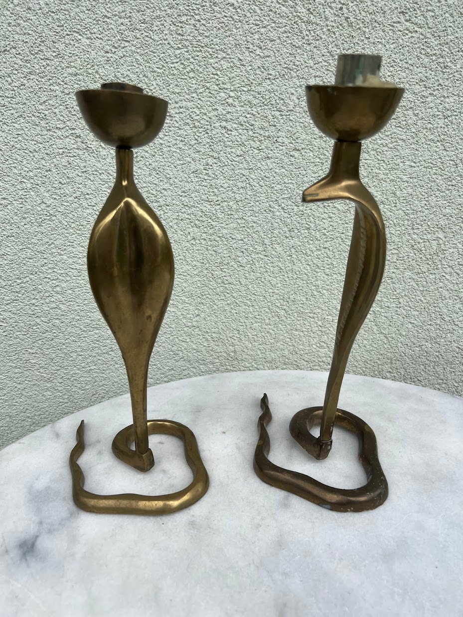 Žvakidė Kobra, žalvarinė. 2 vnt. Aukštis 28 cm. Kaina po 63