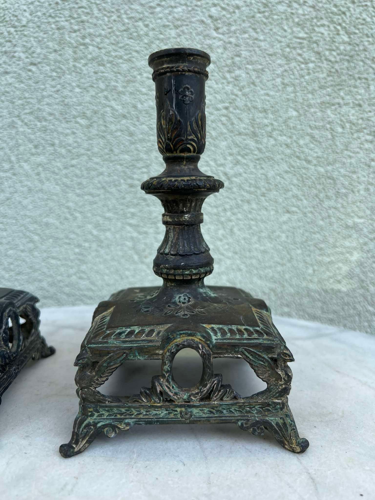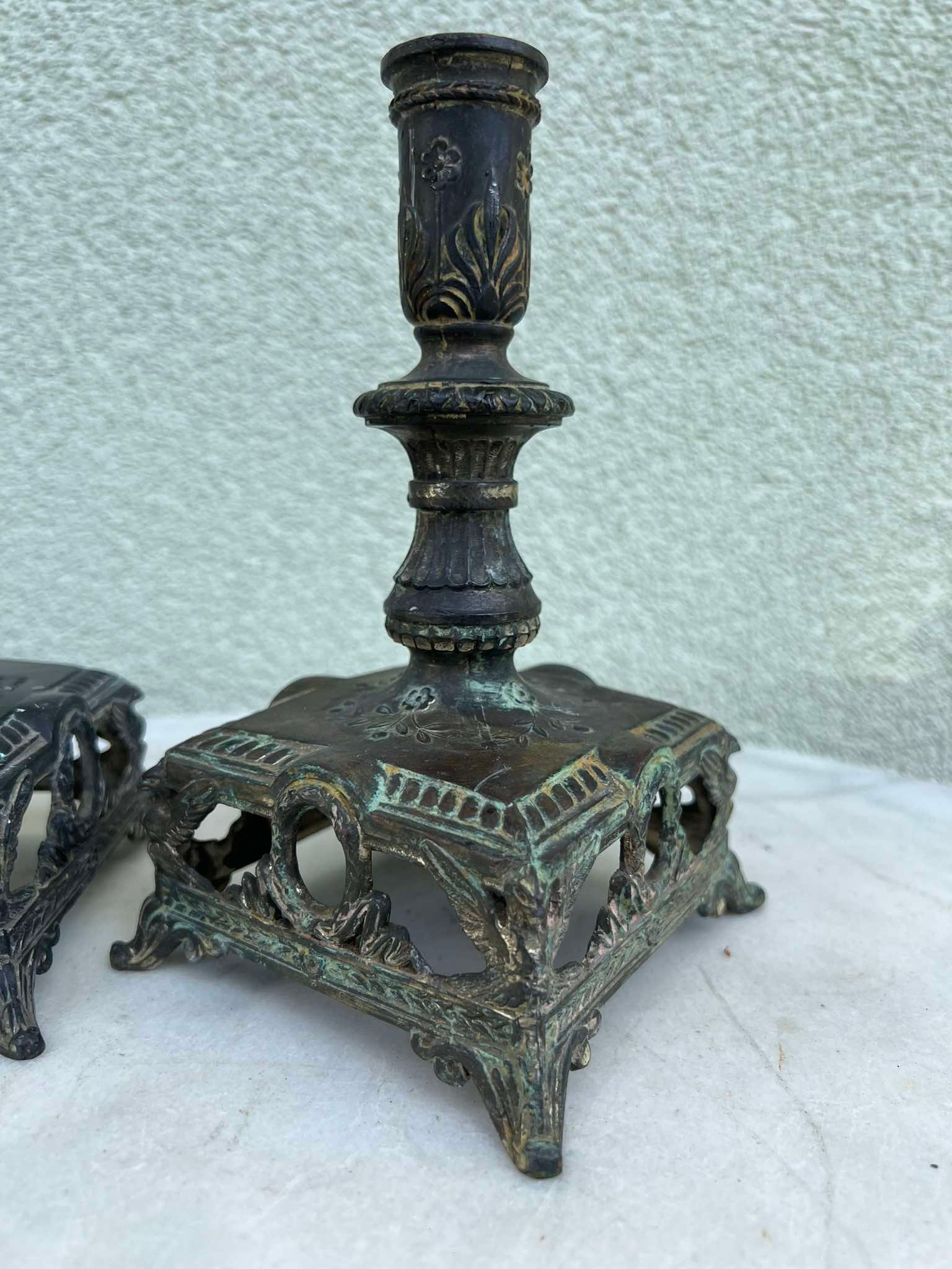 Žvakidė, žvakidės Ampyro stiliaus, antikvarinės, prancūziškos. 2 vnt. Aukštis 18, pagrindas: 10 x 10 cm. Kaina po 28