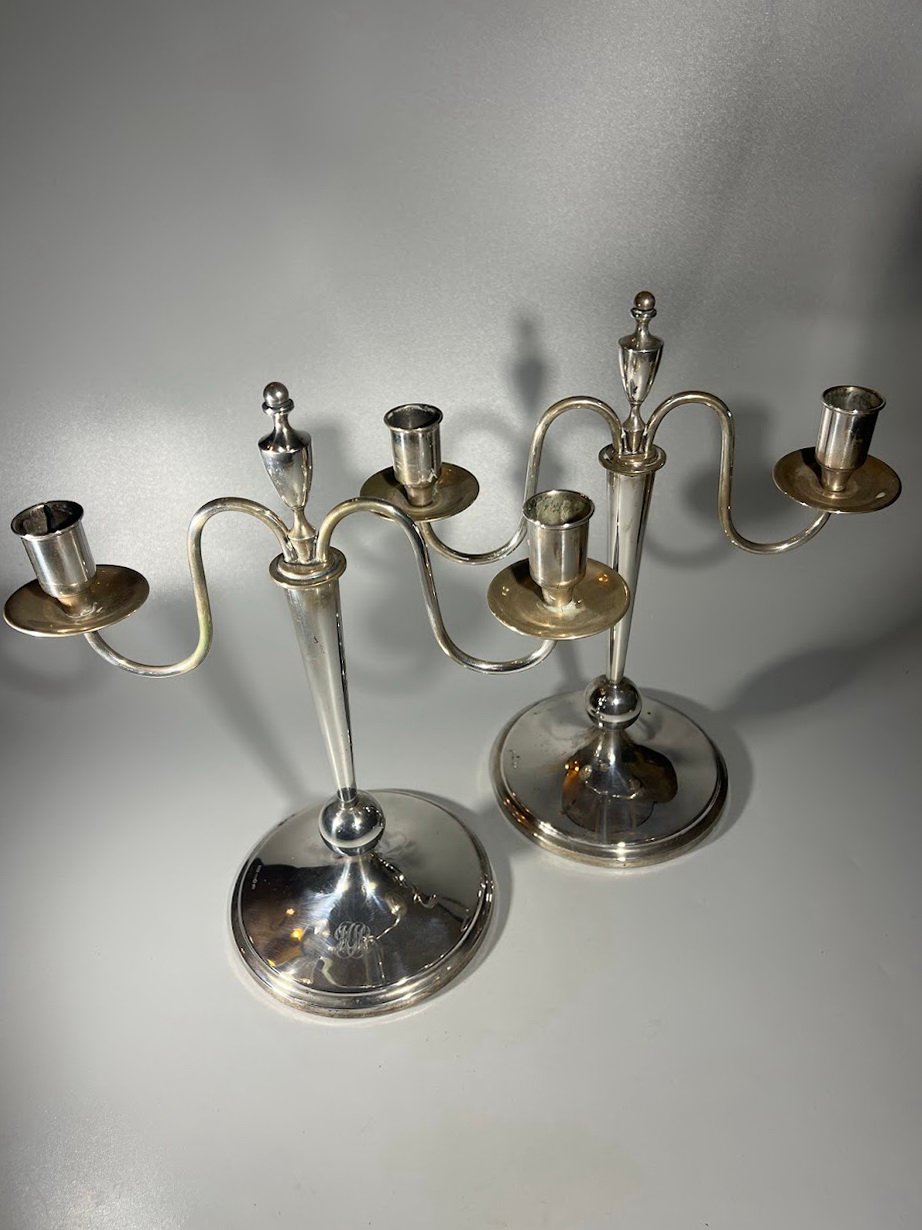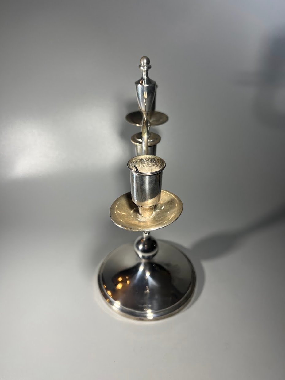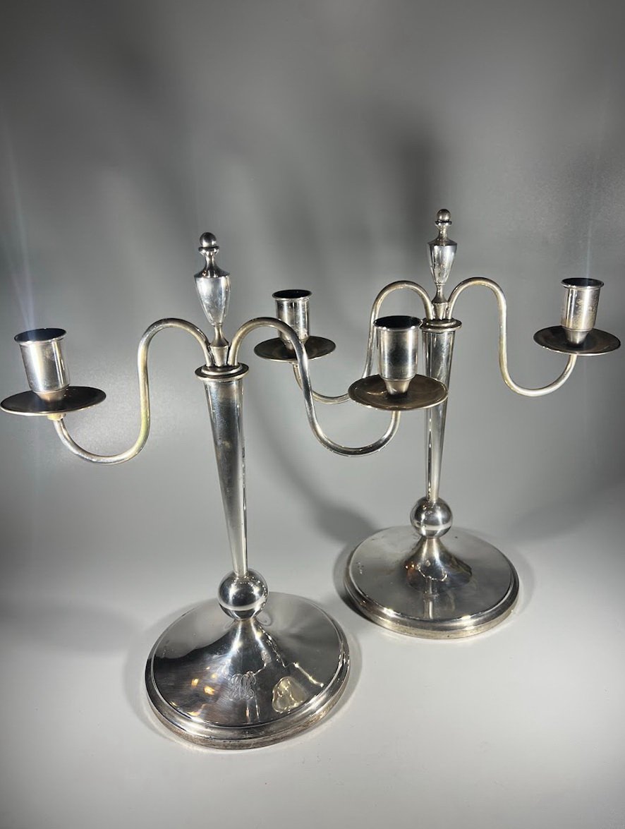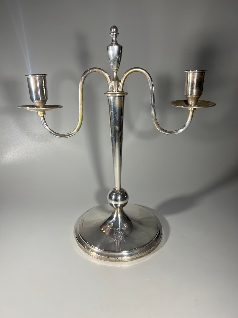 Žvakidės sidabrinės, antikvarinės, Art Deco stiliaus. Dizaineris: Elis Bergh. Gamintojas: C. G. Hallberg, Stokholmas. 1927 m. Svoris abiejų 752 g. Abiejų žvakidžių pagrindai neužpildyti, todėl tai grynas svoris. Kaina 2335 už abi.