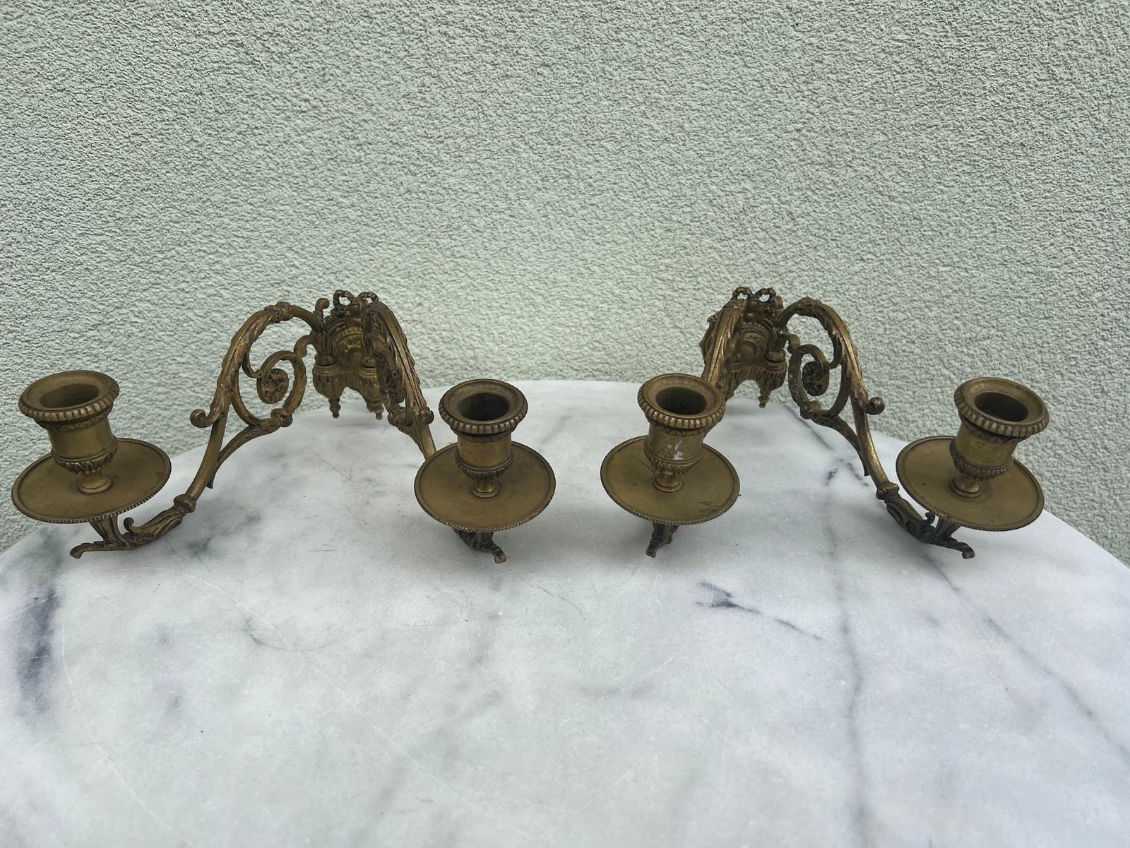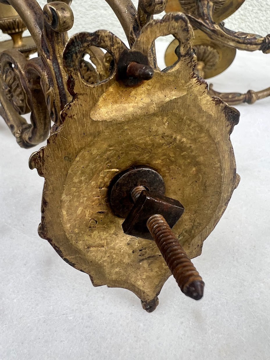 Žvakidės sieninės, pianino bronzinės antikvarinės prancūziškos L. Pinet, Paris. 2 vnt. Kaina 167 už abi