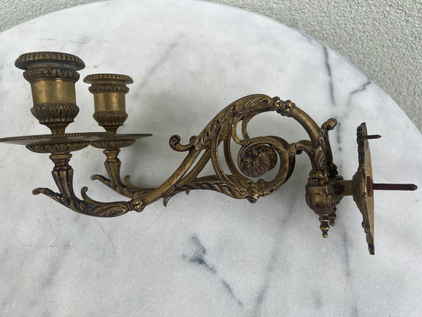 Žvakidės sieninės, pianino bronzinės antikvarinės prancūziškos L. Pinet, Paris. 2 vnt. Ilgis 22 cm. Tvirtinimo plokštelės dydis: 6 x 10 cm. Kaina 167 už abi.