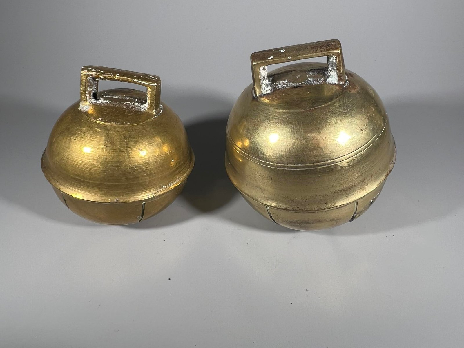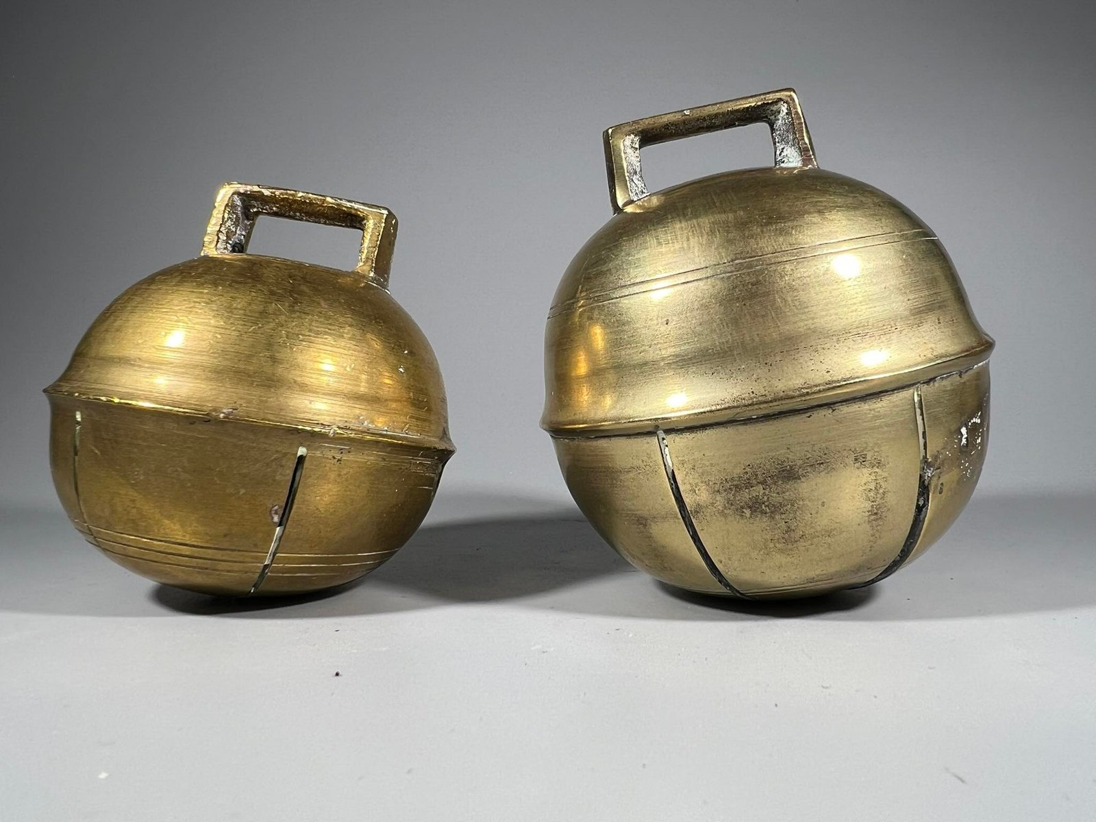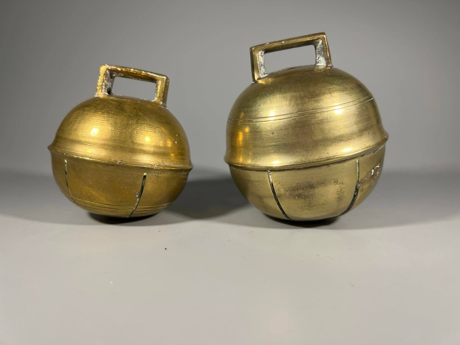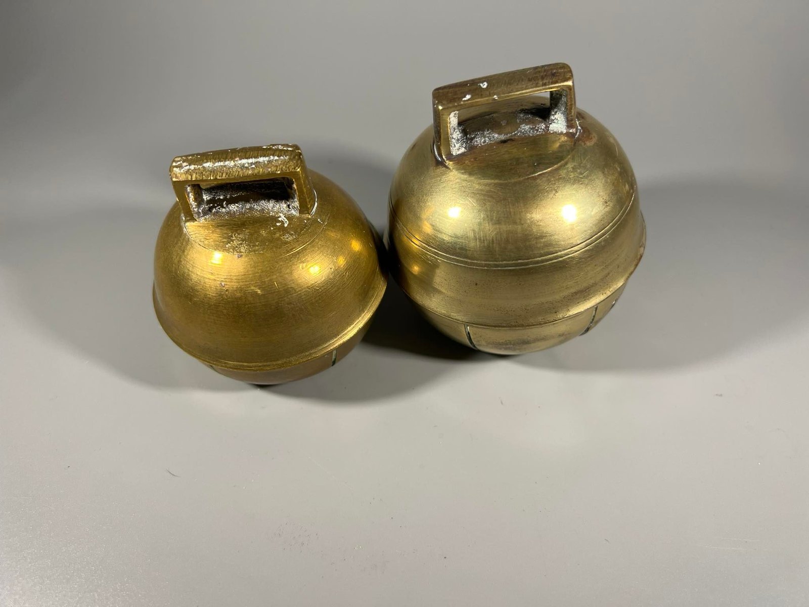 Žvanguliai, varpeliai apvalūs, pakabinami, antikvariniai. Aukštis 9 ir 7 cm. Kaina po 28