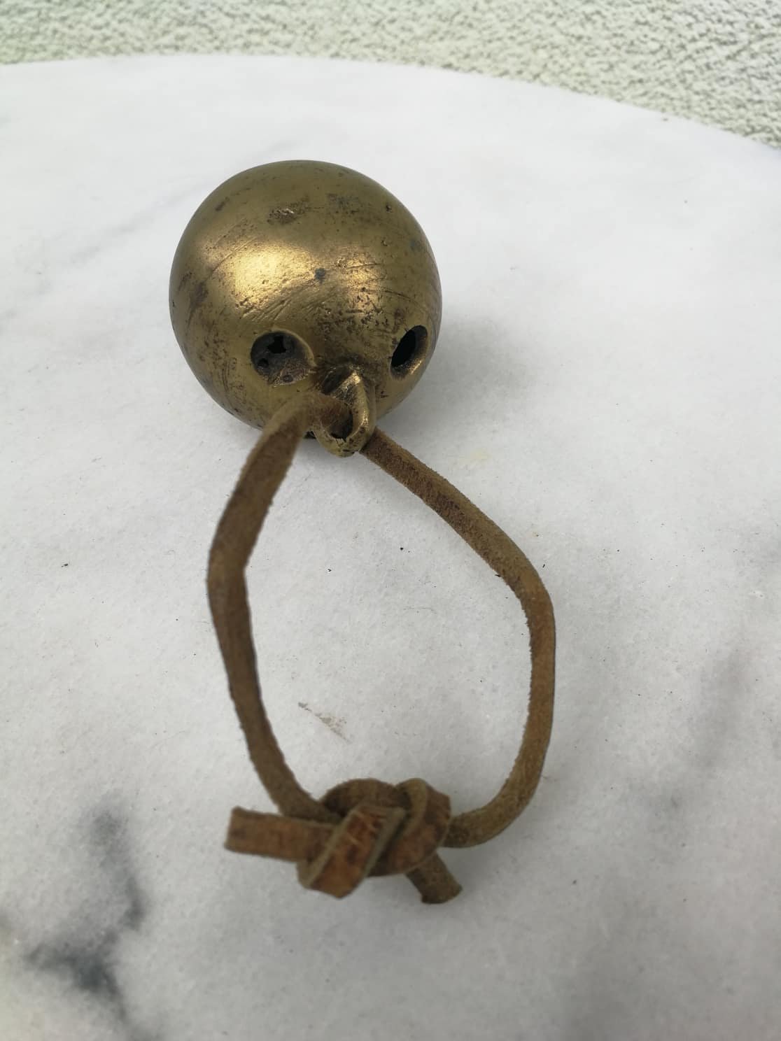 Žvangulis antikvarinis. Aukštis 5,5, skersmuo 4,5 cm. Kaina 26