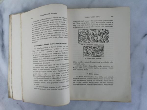 Knyga Visuotinė meno istorija. I t. 1934 m. Dydis: 26 x 18 cm. Dėmė iki 20 psl., daugiau trūkumų nėra. Kaina 32