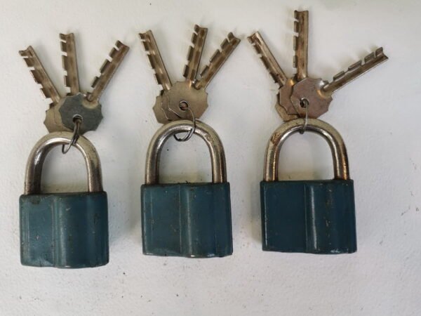 Spynelės su raktais antikvarinės, veikiančios, 3 vnt. Dydis: 5,5 x 7,5 cm Kaina po 23