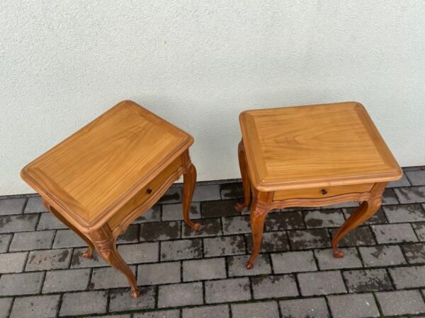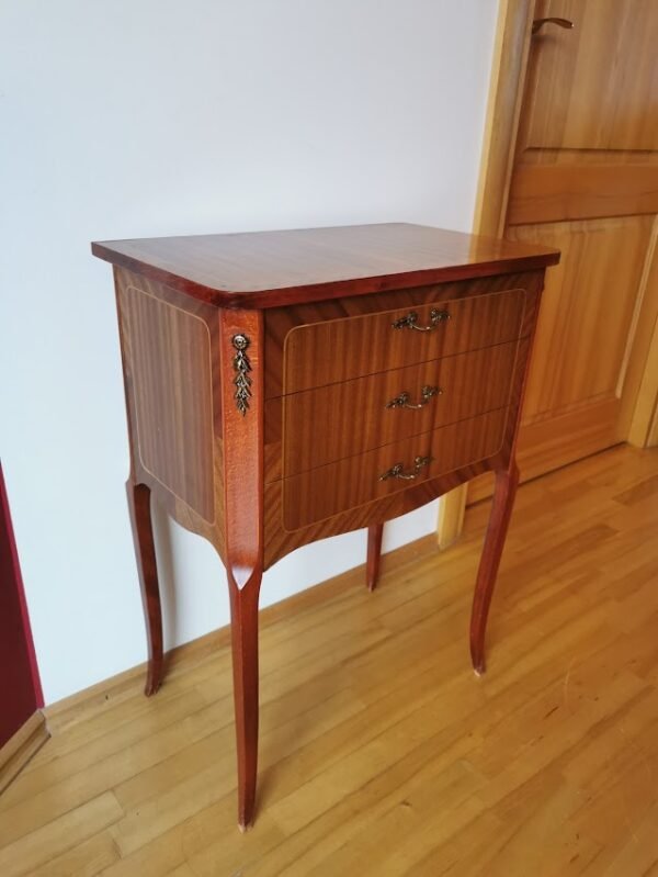 Spintelė, spintelės rokoko stiliaus, su stalčiukais, medinės, tvirtos. 2 vnt. Aukštis 67, ilgis 45, plotis 35 cm. Kaina po 93