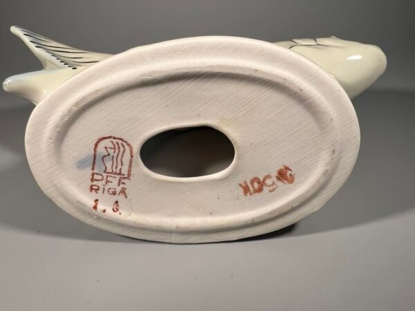 Statulėlė porcelianinė Žuvis. Auksinė žuvelė. RPR Rygos porceliano ir fajanso fabrikas. Aukštis 13, ilgis 16 cm. Kaina 33