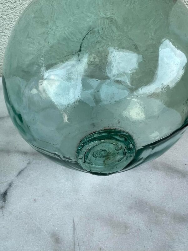 Plūduras, bujus, jūrinis, žvejybinis, stiklinis, žalsvos spalvos, prancūziškas. Skersmuo 20 cm. Kaina 58