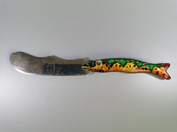 Skirta patiekti virtą arba keptą žuvį, padedant atskirti ir perkelti porcijas nuo bendro patiekalo į individualias lėkštes. Dėl savo formos, primenančios žuvį, ir dažnai plono, plataus ašmenų, ji idealiai tinka švelniai elgtis su trapia žuvimi, kad ji nesubyrėtų. Matoma įrankio viršutinė dalis ir angos, esančios žuvies mentelės korpuse. Šios angos dažnai buvo naudojamos, kad nutekėtų riebalai ar skysčiai nuo patiekiamo žuvies gabalėlio. Rankena yra gausiai ornamentuota, atspindinti Viktorijos ar Edvardo laikotarpio stilių, kuriame buvo vertinamos detalios ir puošnios stalo įrankių formos