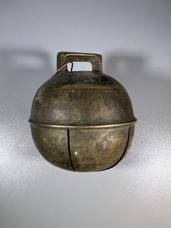 Varpas antikvarinis, OBERTI FONDEUR 26 MORTEAU, pramcūziškas, tvirtinamas prie sienos su skambinimo mechanizmu. XIX a. pb. Viso atstumas nuo sienos 31, plotis 22, aukštis 19, varpo dydis: 11 x 12 cm. Kaina 187
