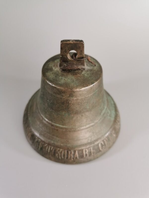 Varpelis Carinės Rusijos laikų su užrašu: „Завода Федарава Алексеева Веденева въ Пурехе Ниж. Губ.”. Neskilęs, netrūkęs. Maloniai skambantis. Svoris 250 gr., aukštis 10 cm., skersmuo 10 cm. Kaina 82