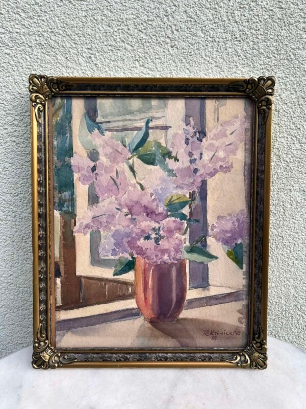 Paveikslas Alyvos. Ramazanas Krinickas. 1929 m. Popierius, akvarelė. Piešinio dydis: 24 x 30 cm. Lietuvos scenografas, grafikas, tapytojas. Pirmasis Lietuvos totorių dailininkas. Žmona skulptorė Natalija Luščinaitė-Krinickienė (1905–1998 m.). Kaina 312