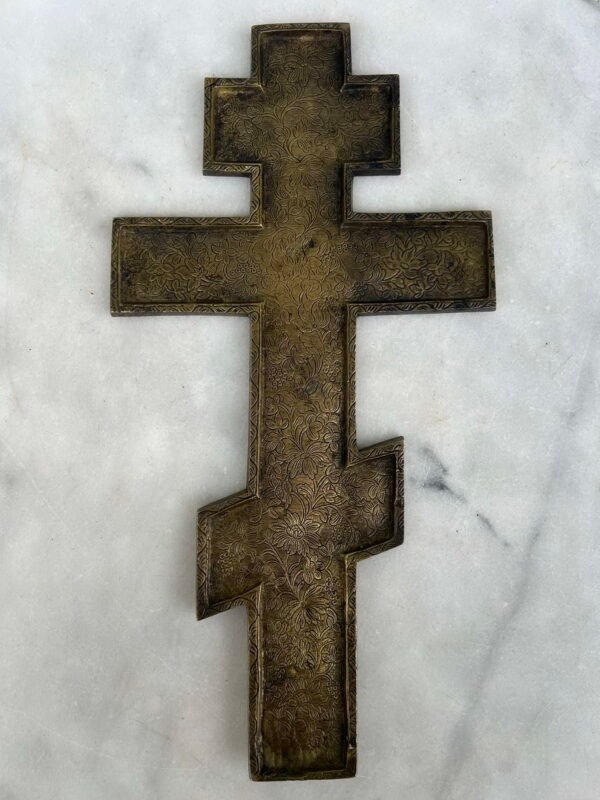 Kryžius stačiatikių, krikščionių ortodoksų, pravoslavų bronzinis, antikvarinis, didelis, puoštas emale. Svoris 900 g. Dydis: 19 x 37 cm. Būklė matosi nuotraukose. Kaina 358