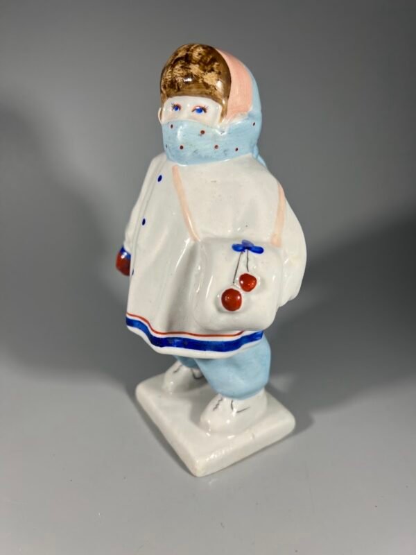 Mergaitė vaizduojama su kailiniais, kepure ir šaliku, užrištu iki pat akių, o per petį permesta mova, papuošta uogų (vyšnių) motyvais. Modelio autorius yra skulptorius J. P. Smirnovas. Porcelianas, puoštas poglazūriniu ir antglazūriniu polichrominiu dažymu.