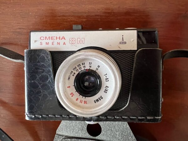 Fotoaparatas Smena 8M, Смена, olimpinis, tarybinis, originaliame dėkle. Gamintas 1970-1995 m. Pagamintas 1991 m. Kaina 18
