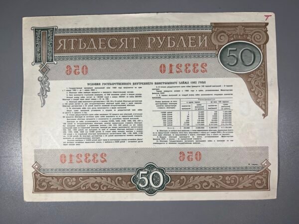 Obligacija, obligacijos tarybinės, 50 rub., 100 rub., 1982 m. Soviet bonds. Kaina po 3