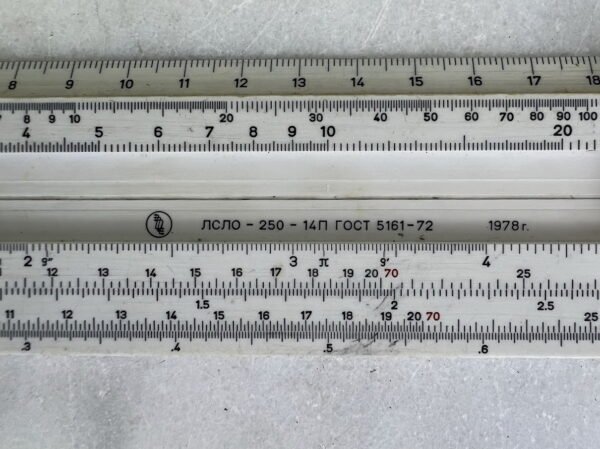 Logaritminė liniuotė sovietinė, tarybinių laikų. 1978 m. Dėžutės ilgis 30 cm. Kaina 16