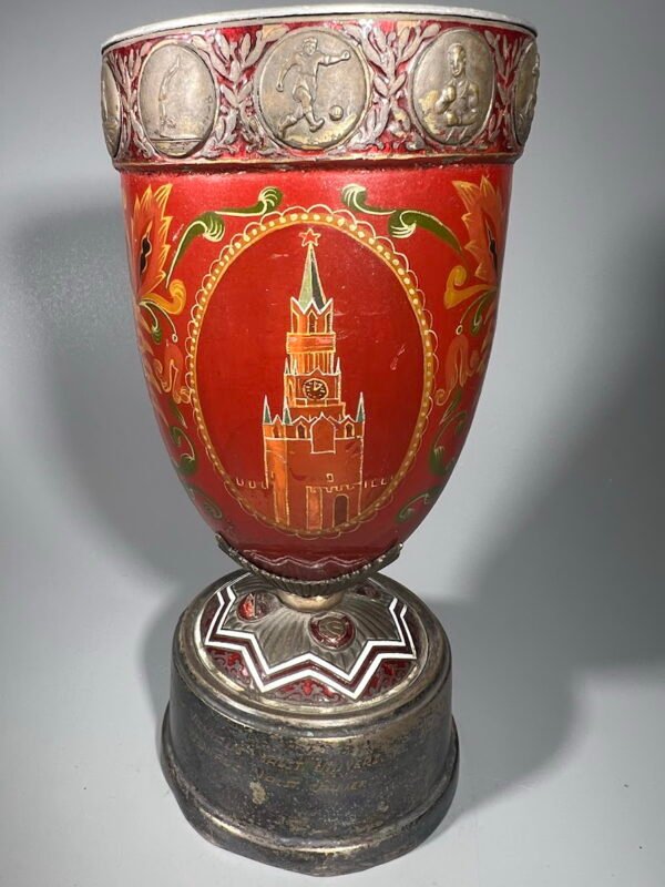 Tai yra senovinis tarybinių laikų sporto apdovanojimo (rus. Кубок спортивный СССР) trofėjus. Šie kūginiai, metaliniai apdovanojimai su būdingais raudonais akcentais buvo įprasti 7–9 dešimtmečiais ir buvo teikiami už pasiekimus įvairiose sporto šakose visoje Tarybų Sąjungoje. Turi savitą brutaliai atrodantį industrinį stilių, pagamintas iš metalo (dažnai plieno arba aliuminio) su chromuota ar sidabro spalvos apdaila.