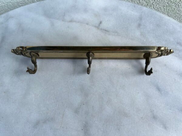 Kabykla žalvarinė, sieninė, atlenkiama, vintažinė. 2 vnt. Kabyklos skersinio ilgis 29 cm. Pagrindas 13 x 17 cm. Kaina po 33